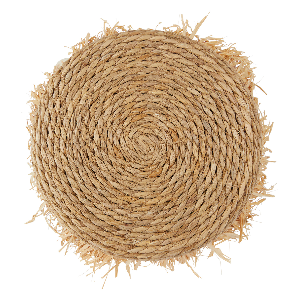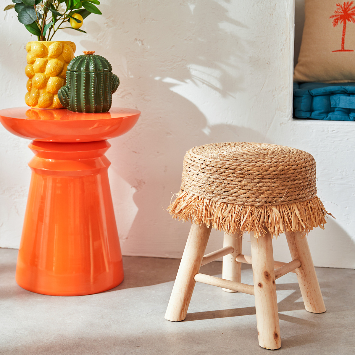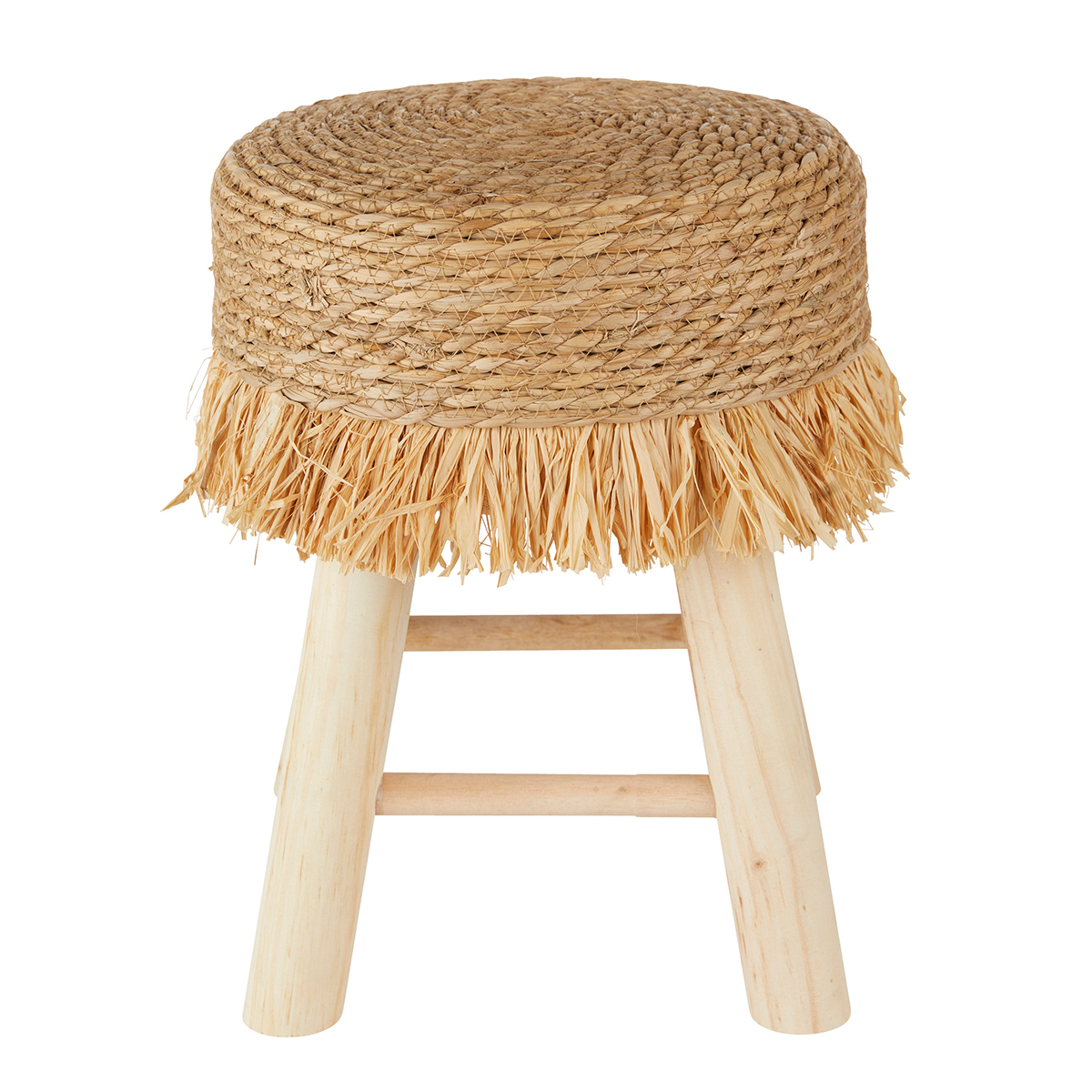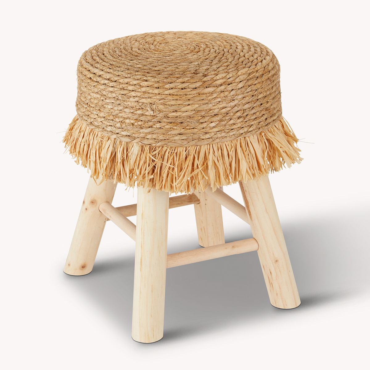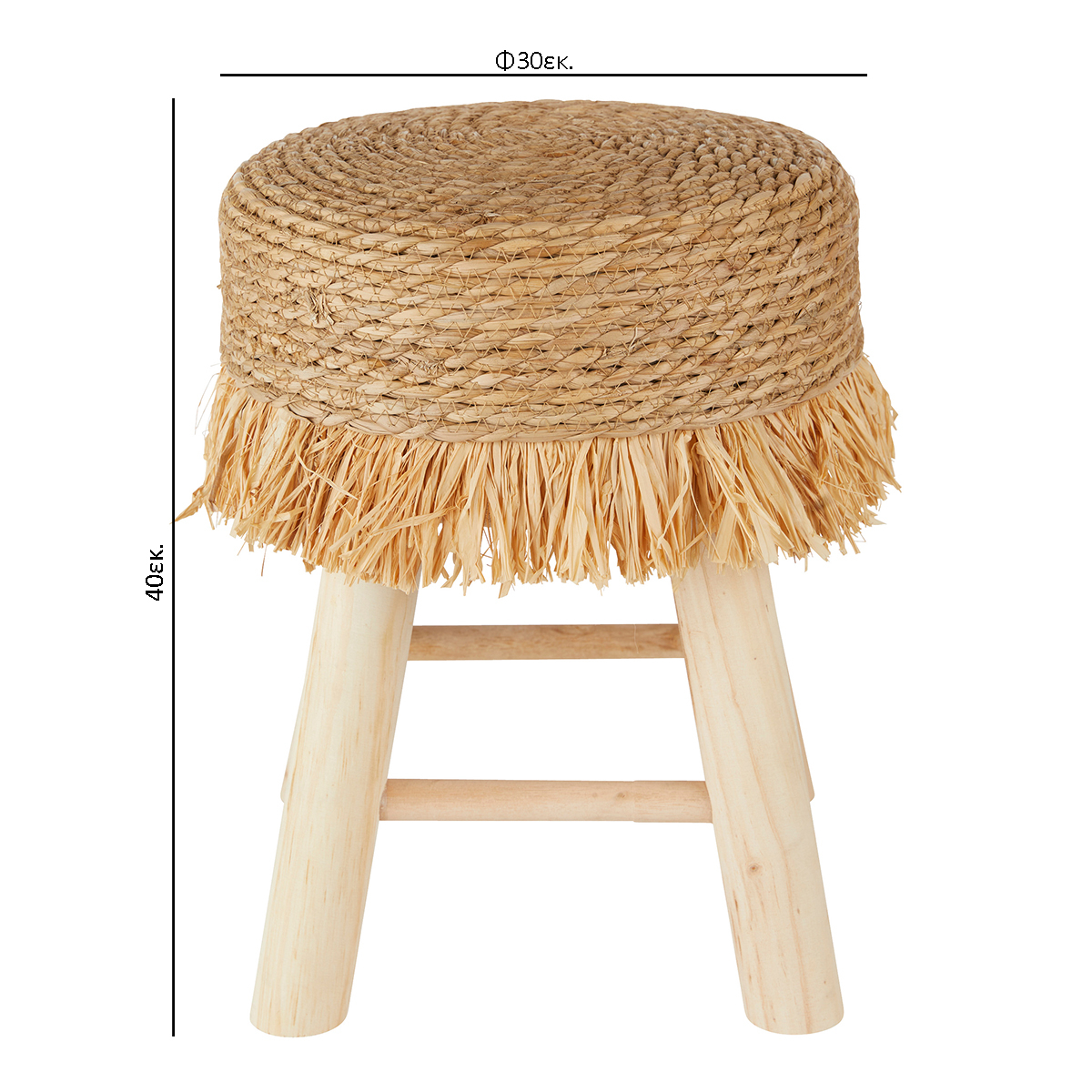 Σκαμπό με έθνικ ύφος. Είναι κατασκευασμένο από ξύλο πεύκου και μοριοσανίδα_Ε1 σε μπεζ χρώμα με μπεζ ψάθινο κάθισμα. Ιδανικό σκαμπό που θα προσφέρει μία έξτρα θέση στο χώρο σας.