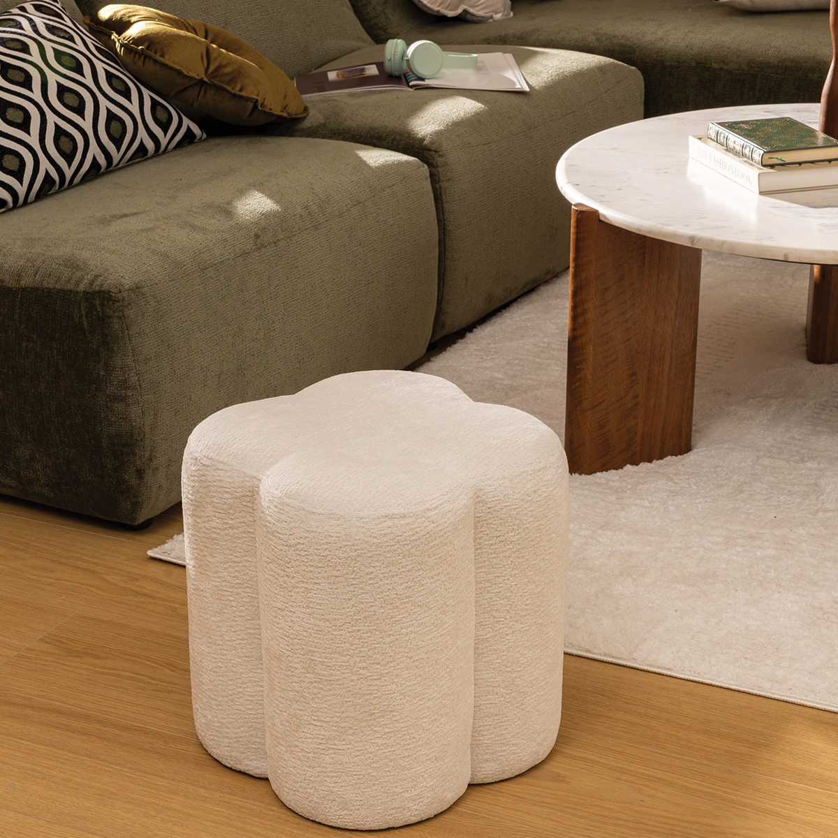 Σκαμπό με μοντέρνο σχεδιασμό σε λευκό χρώμα. Είναι κατασκευασμένο από chenille ύφασμα και ξύλο πεύκου. Η εσωτερική γέμιση είναι από αφρό πολυουρεθάνης. Ιδανικό σκαμπό που θα προσφέρει ένα έξτρα κάθισμα στο χώρο σας.