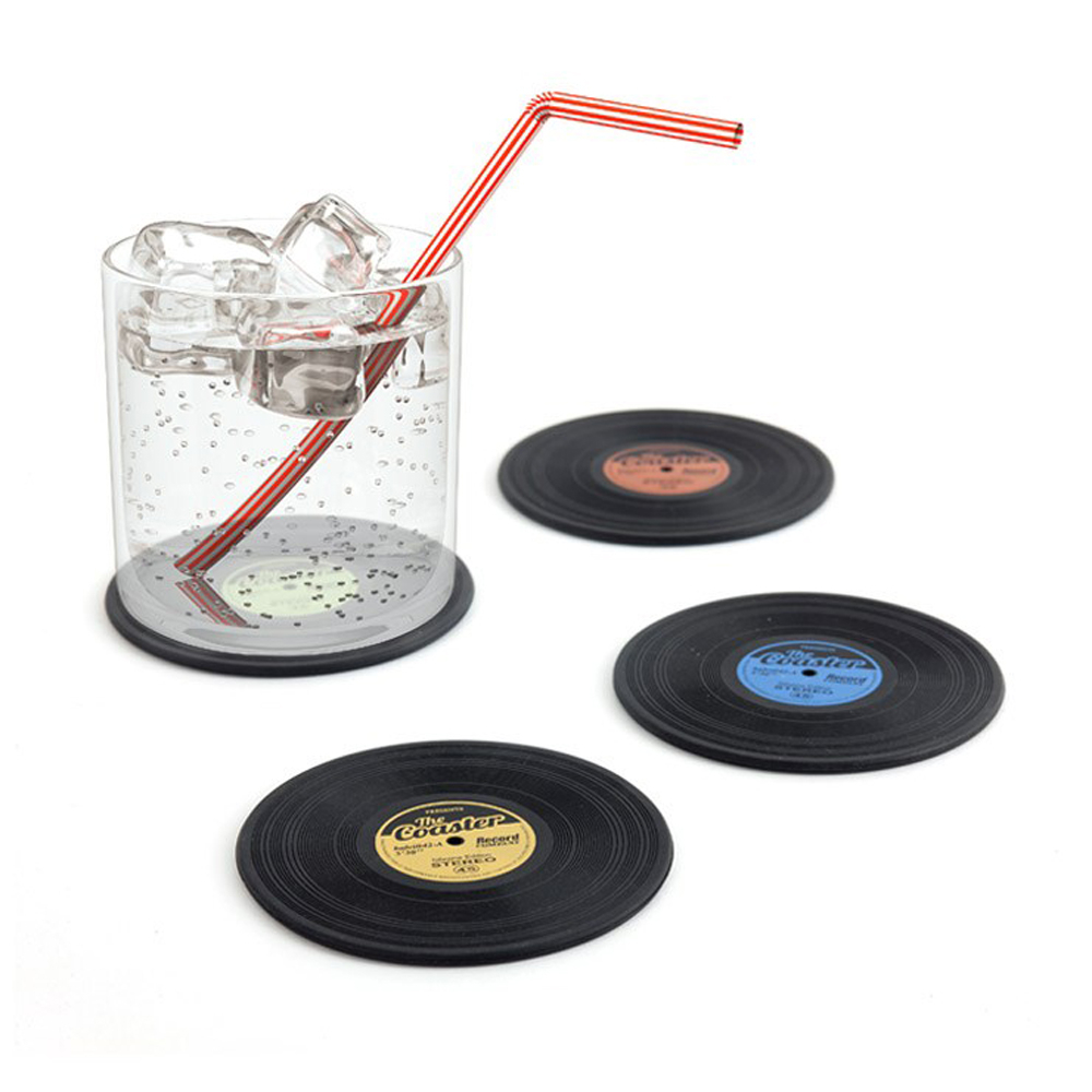 Σουβέρ σε μαύρο χρώμα και πολύχρωμες λεπτομέρειες σε σχήμα δίσκου βινυλίου από την εταιρεία Οctopus. Είναι κατασκευασμένα από σιλικόνη. Τοποθετούνται και από τις δύο όψεις. Χρησιμοποιήστε σουβέρ για να προστατέψετε τις επιφάνειες στα τραπέζια σας και δώστε στον χώρο σας μια μοντέρνα πινελιά!
