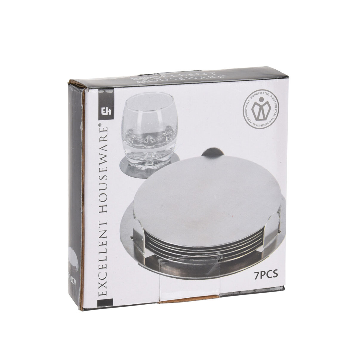 Σουβέρ σε ασημί χρώμα, με μοντέρνο ύφος και κατασκευασμένα από ανοξείδωτο υλικό. Διαθέτουν βάση για να τα τοποθετείτε και προστατευτικό αφρό στο κάτω μέρος. Προστατεύουν τις επιφάνειες από τους λεκέδες που αφήνουν τα ποτήρια.