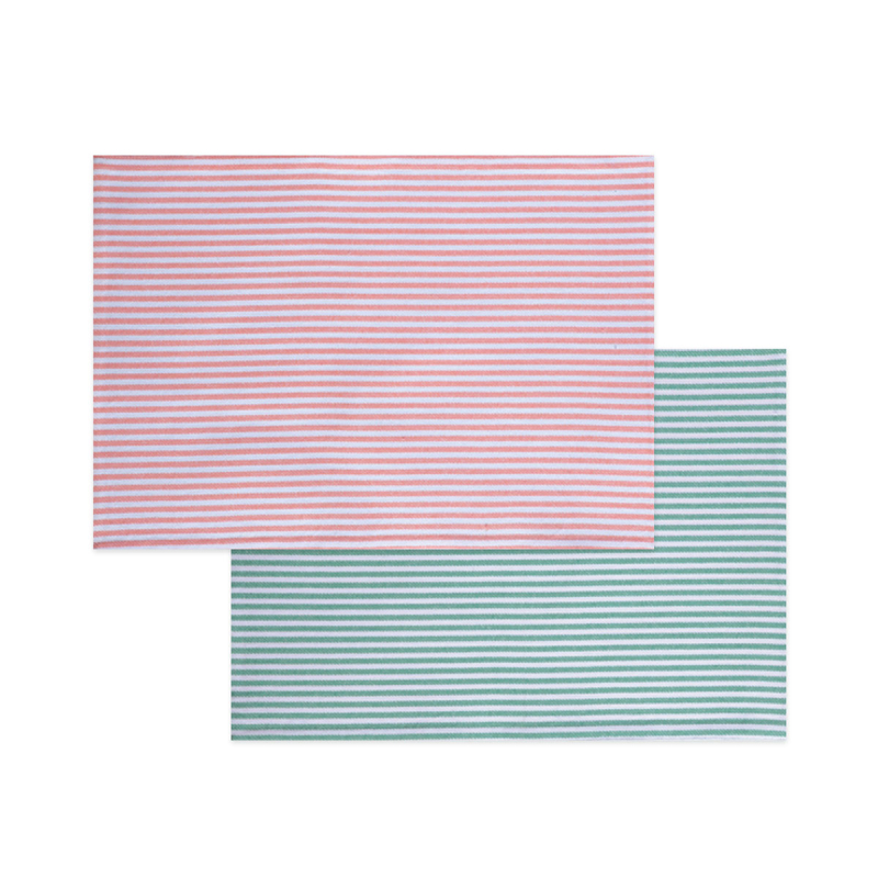 Σουπλά διπλής όψης με ριγέ σχέδιο από την εταιρεία Nef-Nef. Η μία πλευρά έχει λευκό-πράσινο χρώμα ενώ η άλλη έχει κοραλί-λευκό χρώμα. Το ύφασμά του έχει σύνθεση από 100% βαμβάκι βάρους 190gr/m2 επεξεργασμένο με την μέθοδο της νηματοβαφής. Χρησιμοποιήστε το για να διατηρήσετε καθαρό το τραπέζι κατά την διάρκεια του φαγητού. Συνδυάστε το με τα υπόλοιπα προϊόντα της ίδιας σειράς για ένα ολοκληρωμένο αποτέλεσμα.