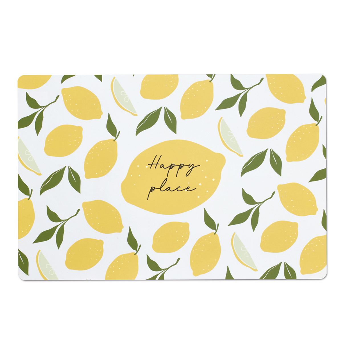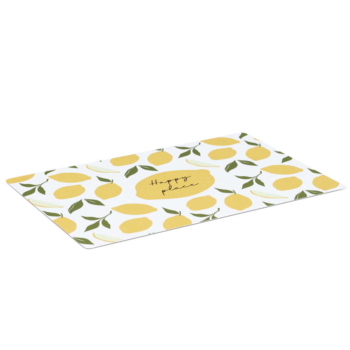 Σουπλά σε λευκό χρώμα και κίτρινο-πράσινο σχέδιο με λεμόνια. Είναι κατασκευασμένο από πλαστικό υλικό. Χρησιμοποιείται για το φαγητό και για να προστατεύσει επιφάνειες, όπως το τραπέζι, το πάσο, κλπ. Συνδυάστε το με την υπόλοιπη διακόσμηση και δώστε στυλ και χαρακτήρα στο χώρο σας.