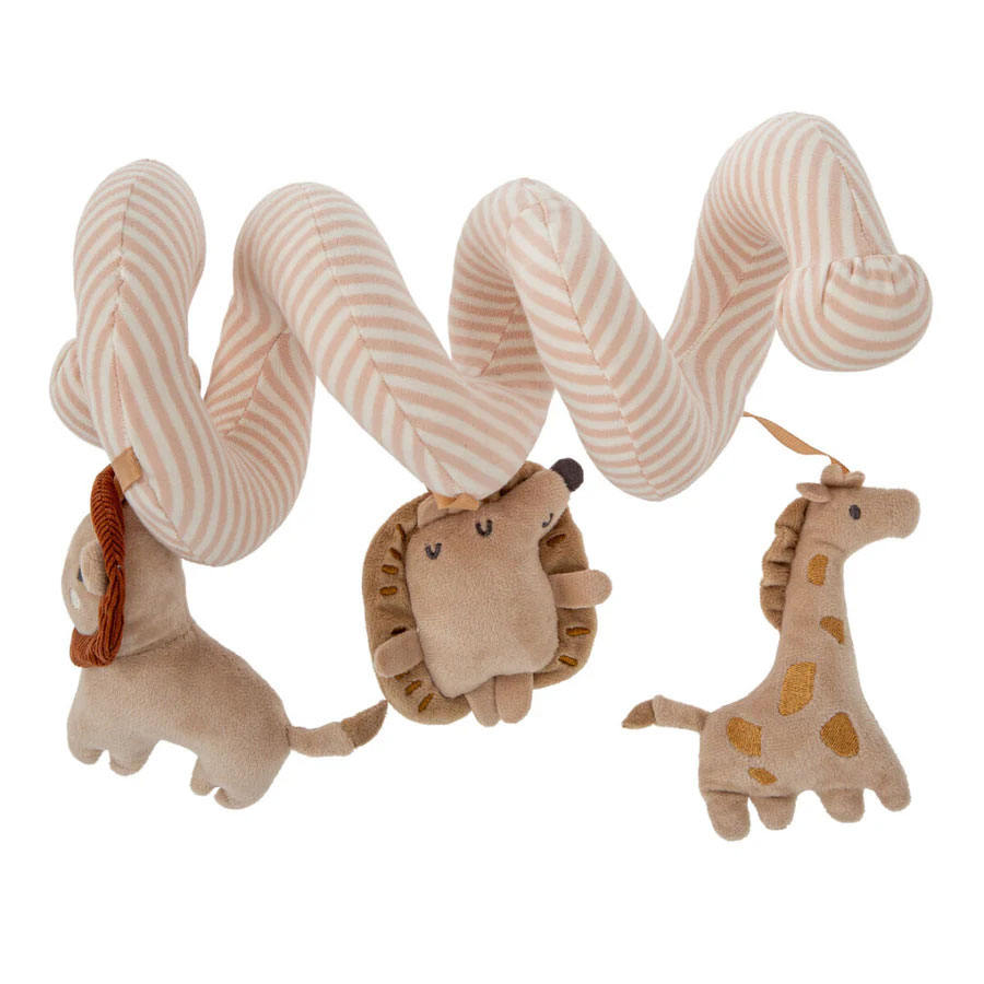 Παιχνίδι δραστηριότητας σε μπεζ-καφέ αποχρώσεις της εταιρείας Bimbidreams. Είναι κατασκευασμένο από 60% βαμβάκι και 40% πολυεστέρα. Η γέμιση του είναι από 100% οικολογικό ανακυκλωμένο πολυεστέρα. Το σπιράλ βοηθά στην ανάπτυξη οπτικών, κινητικών και ακουστικών δεξιοτήτων. Διδάσκει τη σχέση της δράσης-αντίδρασης. Ενεργοποιεί την αίσθηση της αφής του μωρού και το βοηθά να ανακαλύψει τον κόσμο των χρωμάτων. Μπορεί να στερεωθεί στην κούνια, στο κάθισμα του αυτοκινήτου, στο καρότσι ή ακόμα και στον βραχίονα της κούνιας για να προσφέρει μια τέλεια διασκέδαση.