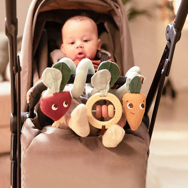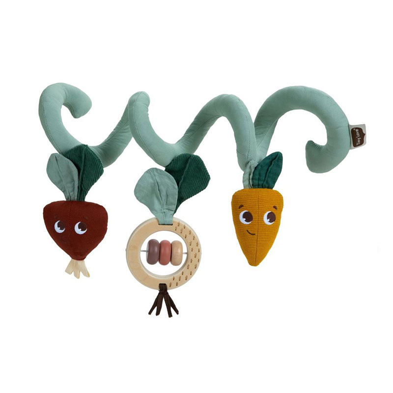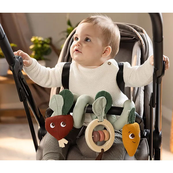 Μαλακό παιχνίδι σπιράλ από την εταιρεία Tiny Love. Είναι κατασκευασμένο από υφασμάτινο υλικό που το καθιστά εξαιρετικά απαλό Αυτό το παιχνίδι για το καρότσι προάγει βασικές δεξιότητες από την πρώτη μέρα. Διαθέτει 8 ελκυστικές δραστηριότητες ανάπτυξης που παρέχουν αισθητηριακή διέγερση και υποστηρίζουν τις κινητικές δεξιότητες. Η ξύλινη κουδουνίστρα με χάντρες και υφή φύλλων για να εξερευνήσει το μωρό. Το παντζάρι με βαμβακερές κορδέλες και υφή φύλλων από μουσελίνα και βαμβάκι. Το καρότο με βαμβακερά φύλλα. Τοποθετείται εύκολα στα περισσότερα καρότσια για διασκέδαση και εξερεύνηση εν κινήσει. Κατάλληλο από την πρώτη μέρα γέννησης.