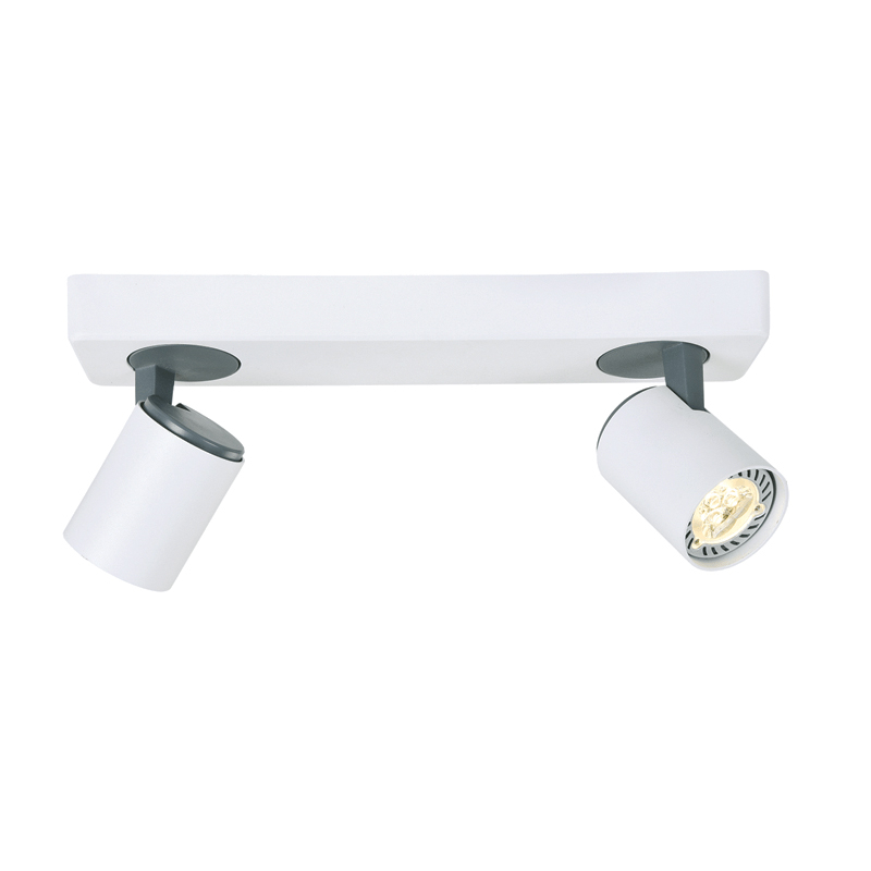Σποτ με ράγα της εταιρείας Aca Decor σε μίνιμαλ στυλ. Μπορεί να τοποθετηθεί σε τοίχο και οροφή. Είναι κατασκευασμένο από αλουμίνιο σε αμμώδες λευκό χρώμα. Διαθέτει περιστρεφόμενες κεφαλές, ώστε να ρυθμίσετε την κλίση του φωτισμού όπως ακριβώς επιθυμείτε. Τύπος ντουί: 2xGU10 και θέσεις για 2 λαμπτήρες έως 35W έκαστος (δεν συμπεριλαμβάνονται).