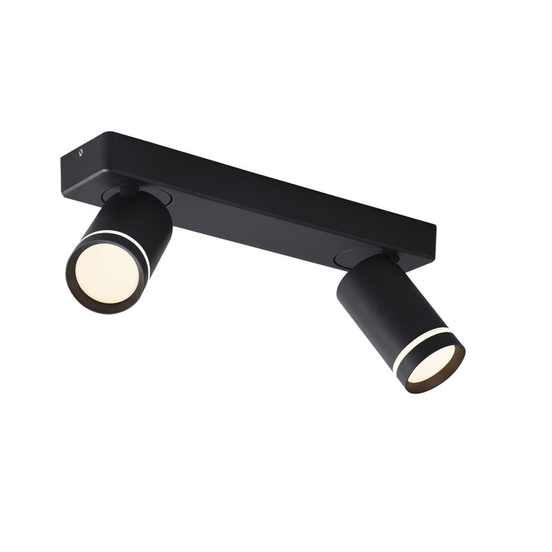 Σποτ με ράγα της εταιρείας Aca Decor σε μίνιμαλ στυλ. Μπορεί να τοποθετηθεί σε τοίχο και οροφή. Είναι κατασκευασμένο από αλουμίνιο σε μαύρο ματ χρώμα. Διαθέτει 2 περιστρεφόμενες κεφαλές, ώστε να ρυθμίσετε την κλίση του φωτισμού όπως επιθυμείτε. Τύπος ντουί: 2xGU10 και θέσεις για 2 λαμπτήρες έως 10W έκαστος (δεν συμπεριλαμβάνονται).