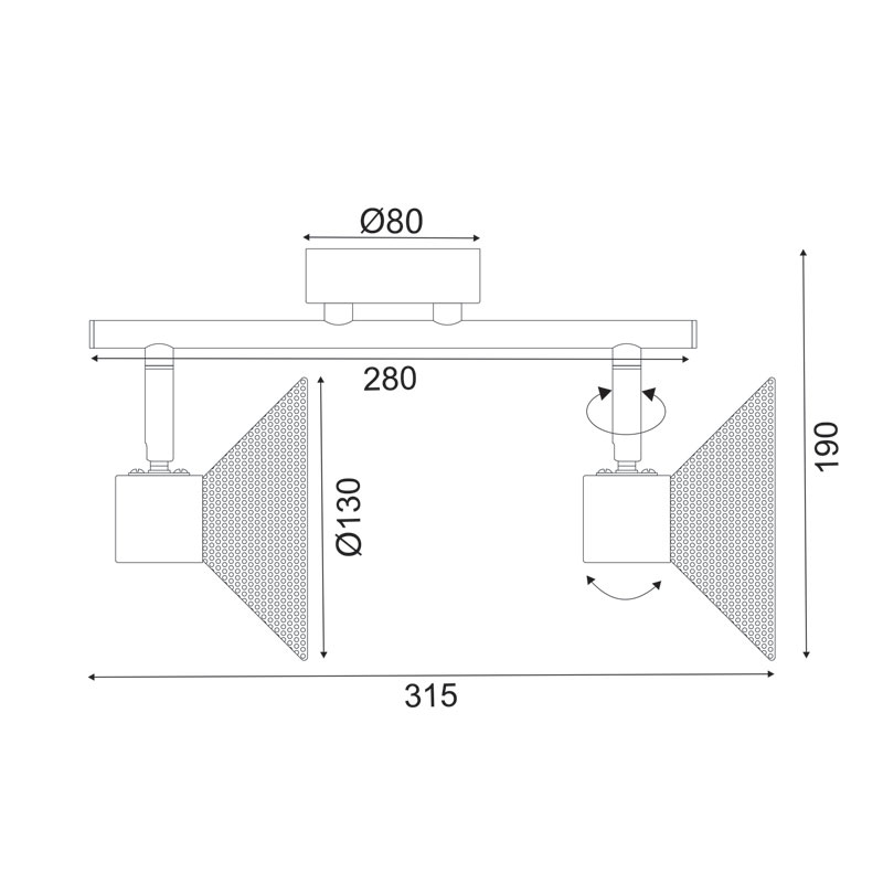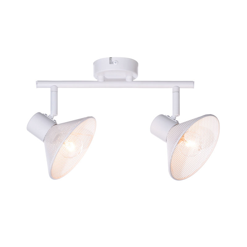 Σποτ με ράγα και μεταλλικό πλέγμα της εταιρείας Aca Decor σε μοντέρνο στυλ. Μπορεί να τοποθετηθεί σε τοίχο και οροφή. Είναι κατασκευασμένο από μέταλλο σε λευκό χρώμα. Διαθέτει 2 περιστρεφόμενες κεφαλές, ώστε να ρυθμίσετε την κλίση του φωτισμού όπως επιθυμείτε. Τύπος ντουί: 2xE14 και θέσεις για 2 λαμπτήρες έως 10W έκαστος (δεν συμπεριλαμβάνονται).