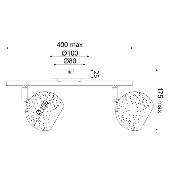 Σποτ της εταιρείας Aca Decor σε μοντέρνο στυλ με περιστρεφόμενες κεφαλές. Μπορεί να τοποθετηθεί σε τοίχο και οροφή. Είναι κατασκευασμένο από μέταλλο σε λευκό ματ χρώμα και οι εσωτερικές επιφάνειες είναι μπρονζέ ματ. Τύπος ντουί: 2xG9 και θέσεις για δύο λαμπτήρες έως 33W έκαστος (δεν συμπεριλαμβάνονται).