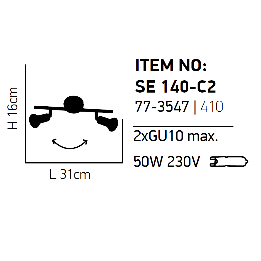 • Τεμάχια: 1 Σποτ Οροφής Δίφωτο Με Ράγα 31εκ.Μx8εκ.Πx16εκ.Υ