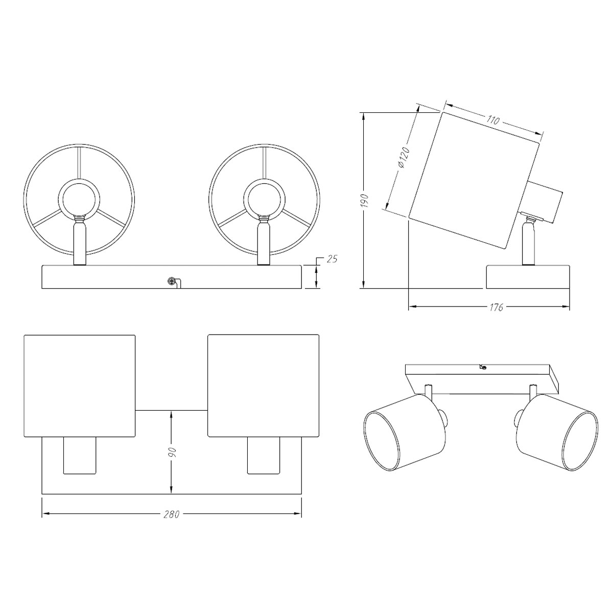 • Τεμάχια: 1 Σποτ Οροφής/Τοίχου Με Ράγα Δίφωτο 28εκ.Mx19εκ.Πx17.6εκ.Υ