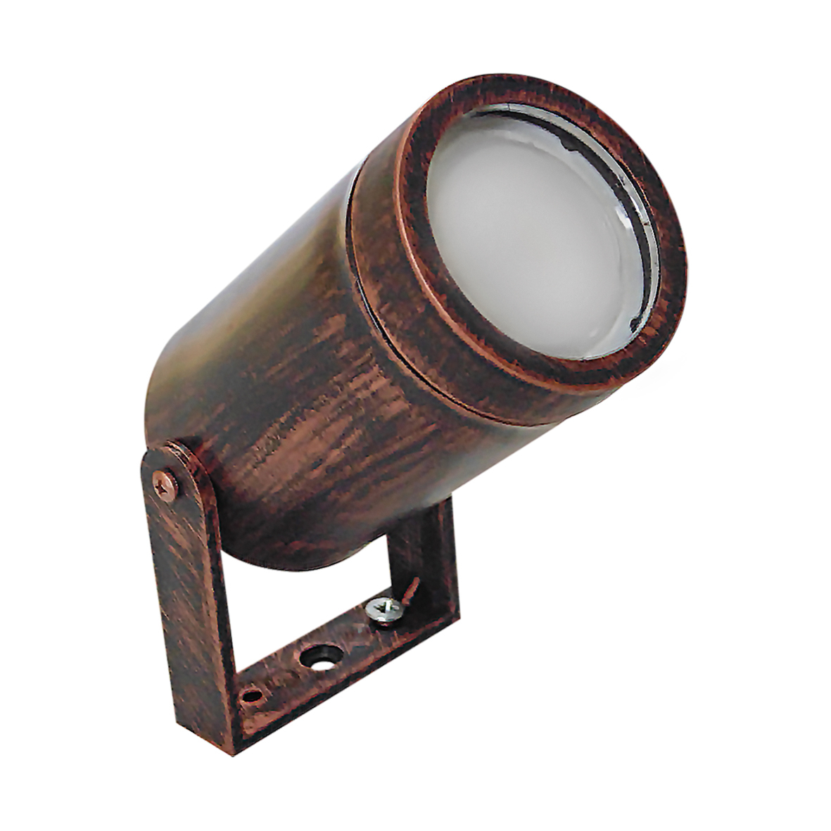 Σποτ μονόφωτο κήπου της εταιρείας Heronia. Διαθέτει προστασία από υγρασία και σκόνη με βαθμό στεγανότητας IP54 και είναι κατάλληλο και για εξωτερικούς χώρους. Σε μίνιμαλ στυλ είναι ιδανικό για να φωτίσετε και να διακοσμήσετε τον κήπο και τους εξωτερικούς χώρους του σπιτιού ή του εξοχικού σας. Φέρει κινούμενη κεφαλή και είναι κατασκευασμένο από πλαστικό υλικό σε χάλκινη απόχρωση με εφέ παλαίωσης. Μπορεί να τοποθετηθεί σε τοίχο, οροφή ή δάπεδο και είναι απαραίτητο να βιδωθεί σε σταθερή επιφάνεια. Τύπος ντουί: 1xGU10 και θέση για 1 λαμπτήρα **ΑΠΟΚΛΕΙΣΤΙΚΑ LED έως 10W** (δεν συμπεριλαμβάνεται). Δεν περιλαμβάνονται οι βίδες στερέωσης.