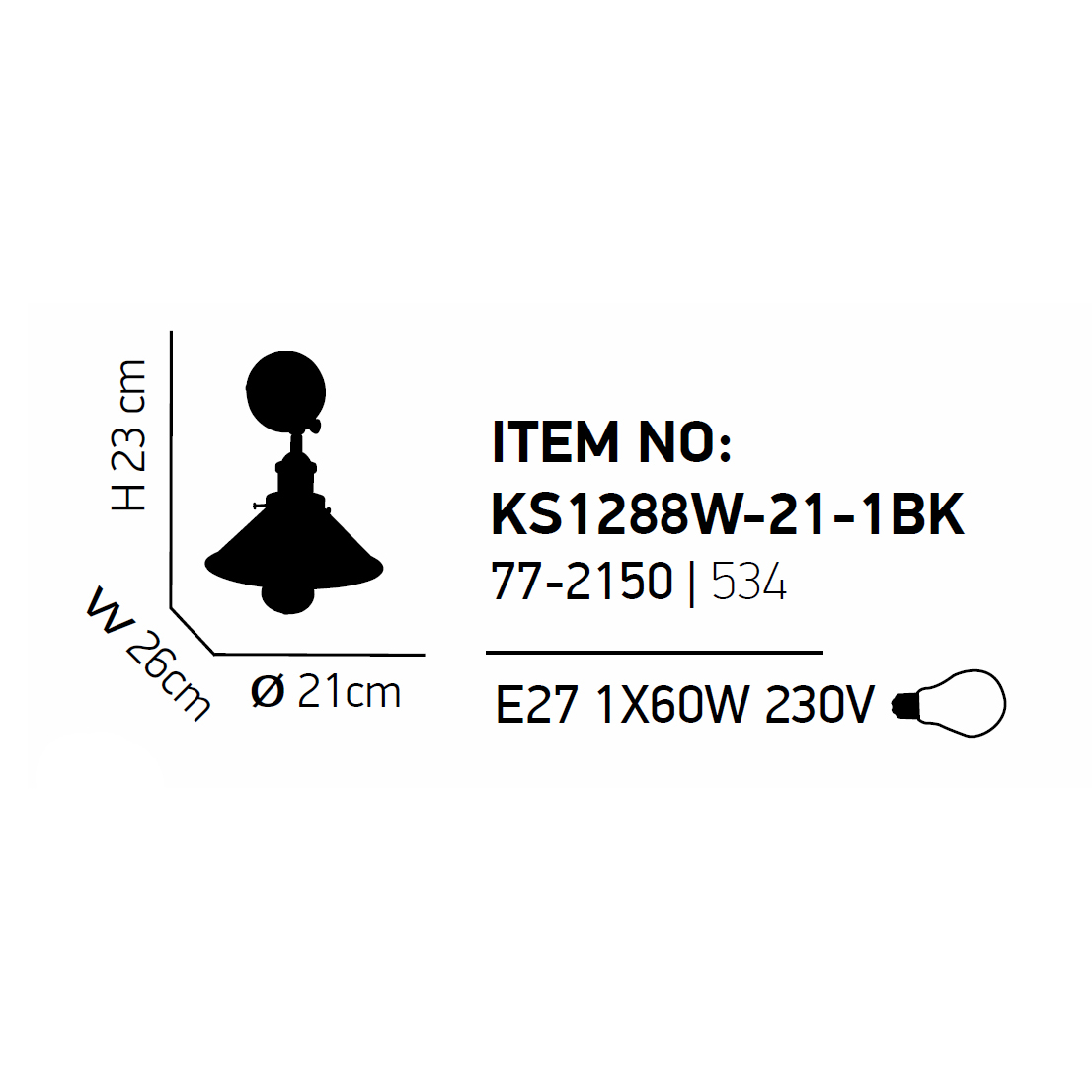 • Τεμάχια: 1 Σποτ Τοίχου Μονόφωτο 21εκ.Μx26εκ.Π.x23εκ.Υ.