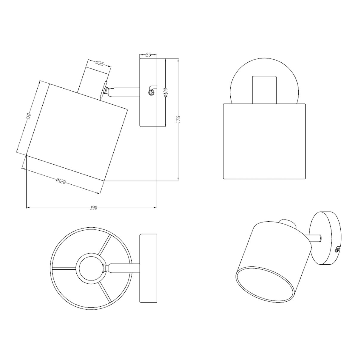 • Τεμάχια: 1 Σποτ Οροφής/Τοίχου Μονόφωτο 19εκ.Mx12εκ.Πx17.6εκ.Υ