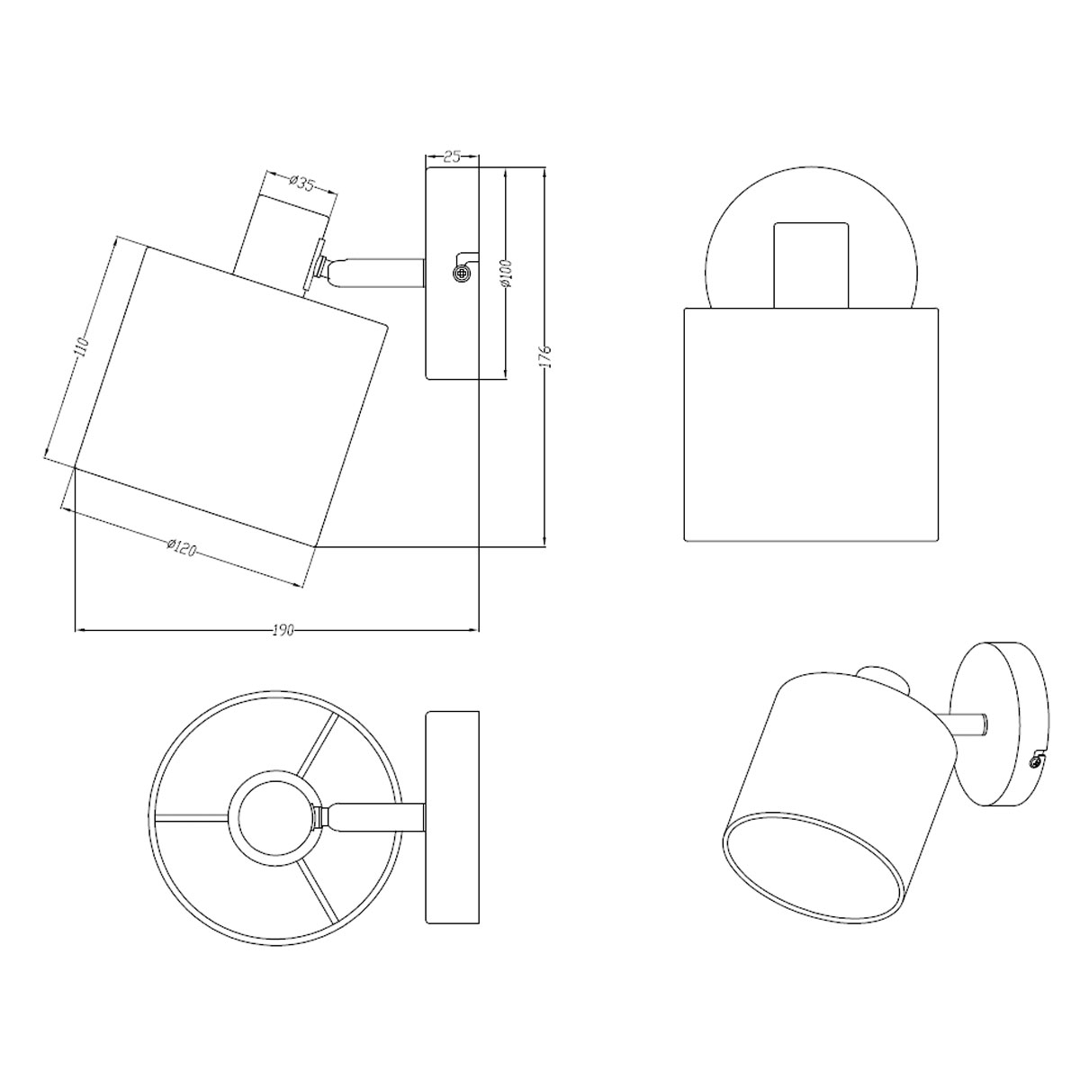 • Τεμάχια: 1 Σποτ Οροφής/Τοίχου Μονόφωτο 19εκ.Mx12εκ.Πx17.6εκ.Υ
