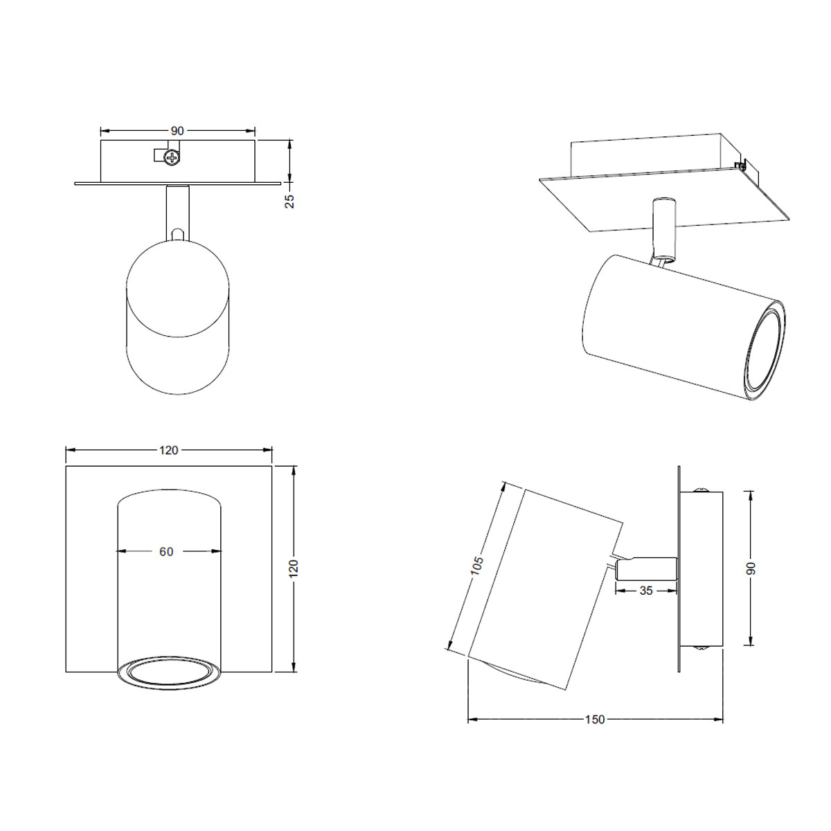 • Τεμάχια: 1 Σποτ Οροφής/Τοίχου Μονόφωτο 15εκ.Mx12εκ.Πx12εκ.Υ