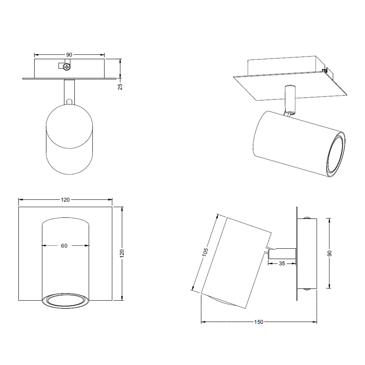 • Τεμάχια: 1 Σποτ Οροφής/Τοίχου Μονόφωτο 15εκ.Mx12εκ.Πx12εκ.Υ