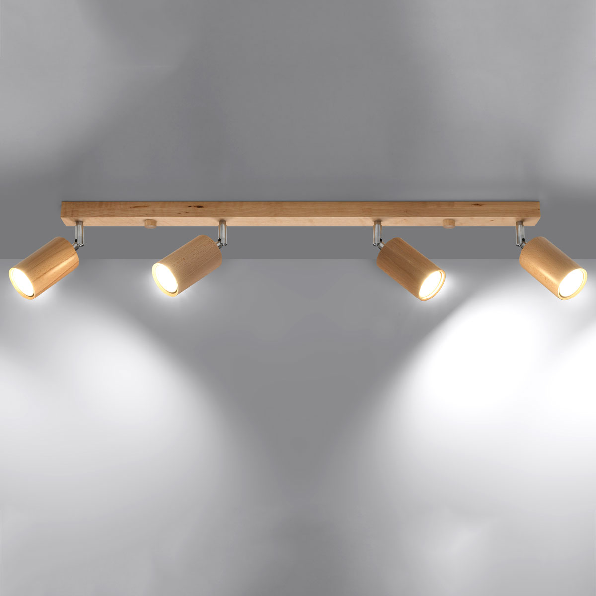 Σποτ με ράγα από την εταιρεία Sollux σε μίνιμαλ στυλ. Είναι κατασκευασμένο από ξύλο σε μπεζ ανοιχτό χρώμα. Μπορεί να τοποθετηθεί σε τοίχο ή και οροφή. Διαθέτει 4 περιστρεφόμενες κεφαλές, ώστε να ρυθμίσετε την κλίση του φωτισμού όπως επιθυμείτε. Είναι κατάλληλο για χρήση σε εσωτερικό χώρο με IP20. Τύπος ντουί: 4xGU10 και θέσεις για 4 λαμπτήρες έως 40W ή Led έως 12W (δεν συμπεριλαμβάνονται). Τάση: 220-230Volt. *Το προϊόν έρχεται αμοντάριστο και συναρμολογέιται βάσει οδηγιών.*