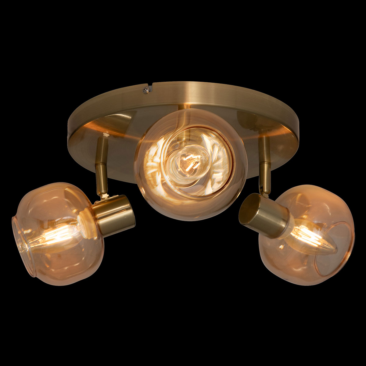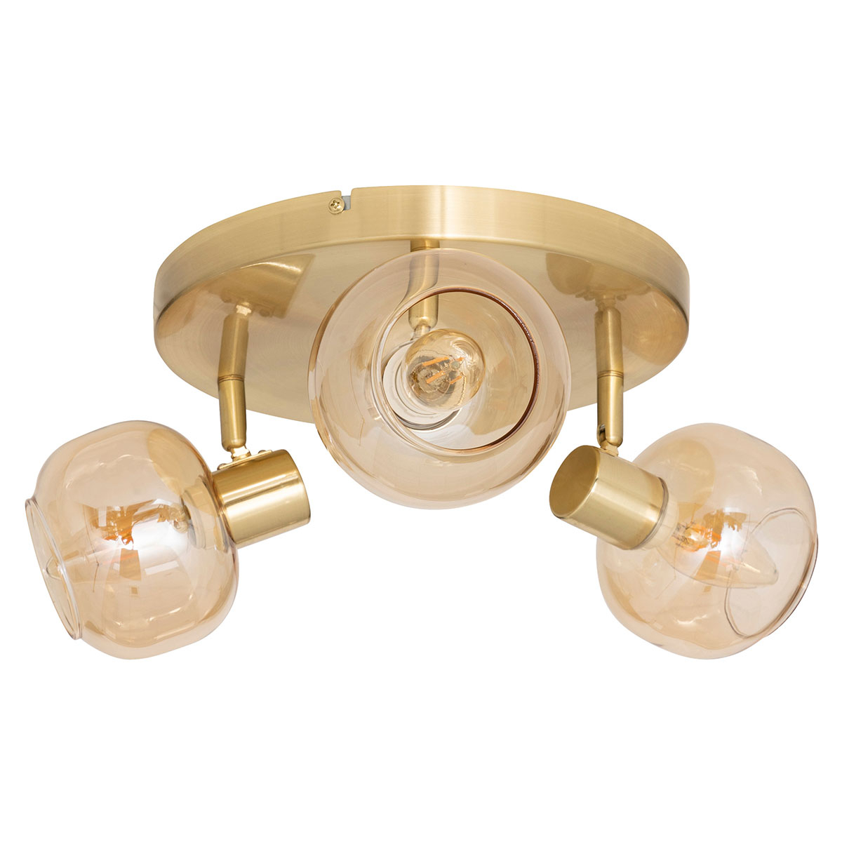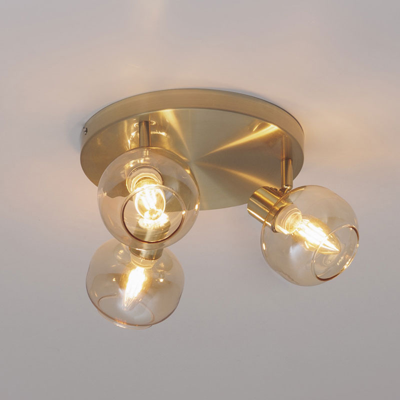 Σποτ οροφής με περιστρεφόμενες κεφαλές. Είναι κατασκευασμένο από μεταλλικό υλικό σε χρυσό χρώμα και διαθέτει 3 γυάλινα καπέλα. Μπορεί να τοποθετηθεί σε τοίχο και οροφή. Είναι κατάλληλο για χρήση σε εσωτερικό χώρο με IP20. Τύπος ντουί: 3xE14 και θέσεις για 3 λαμπτήρες έως 25W (δεν συμπεριλαμβάνονται). Συνδυάστε το με τα υπόλοιπα φωτιστικά της ίδιας συλλογής για ένα ολοκληρωμένο αποτέλεσμα στο χώρο σας.