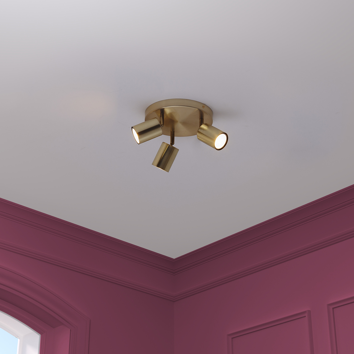Σποτ οροφής με περιστρεφόμενες κεφαλές. Είναι κατασκευασμένο από μεταλλικό υλικό σε χρυσό χρώμα και διαθέτει 3 καπέλα. Είναι κατάλληλο για χρήση σε εσωτερικό χώρο με IP20. Τύπος ντουί: 3xGU10 και θέσεις για 3 λαμπτήρες έως 25W (δεν συμπεριλαμβάνονται). Συνδυάστε το με τα υπόλοιπα φωτιστικά της ίδιας συλλογής για ένα ολοκληρωμένο αποτέλεσμα στο χώρο σας.