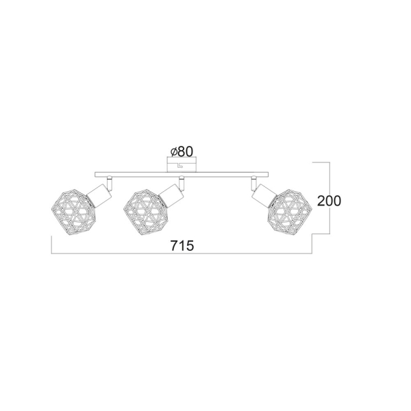• Τεμάχια: 1 Σποτ Τοίχου/ Οροφής Τρίφωτο 71.5εκ.Μx12.5εκ.Πx20εκ.Υ Με Βάση Φ8εκ.
