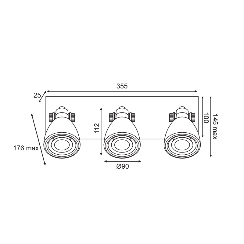• Τεμάχια: 1 Σποτ Τοίχου/ Οροφής Τρίφωτο 35.5εκ.Μx17.6εκ.Πx14.5εκ.Y & Βάση 35.5εκ.Μx10εκ.Π