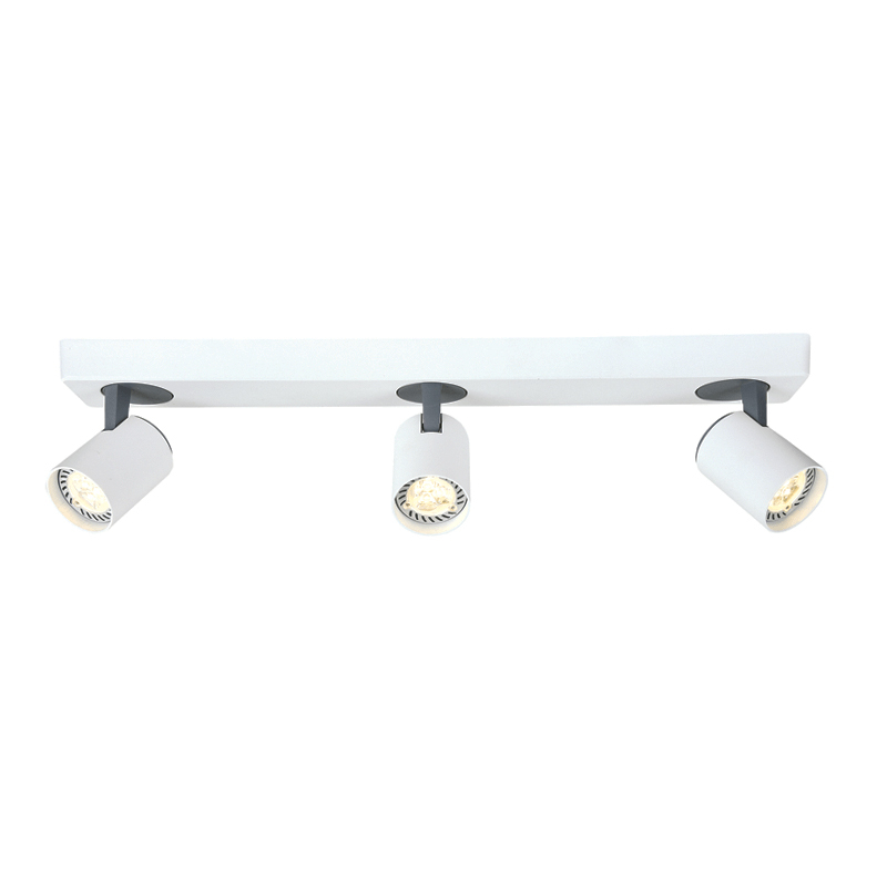 Σποτ με ράγα της εταιρείας Aca Decor σε μίνιμαλ στυλ. Μπορεί να τοποθετηθεί σε τοίχο και οροφή. Είναι κατασκευασμένο από αλουμίνιο σε αμμώδες λευκό χρώμα. Διαθέτει περιστρεφόμενες κεφαλές, ώστε να ρυθμίσετε την κλίση του φωτισμού όπως ακριβώς επιθυμείτε. Τύπος ντουί: 3xGU10 και θέσεις για 3 λαμπτήρες έως 35W έκαστος (δεν συμπεριλαμβάνονται).