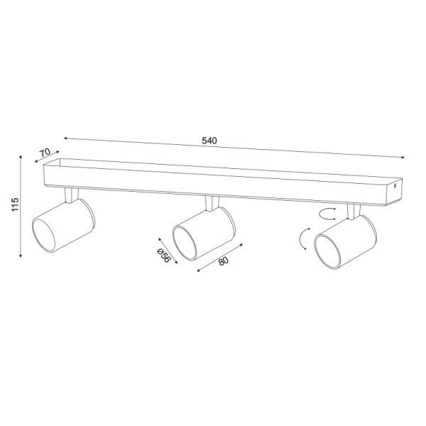 • Τεμάχια: 1 Σποτ Τοίχου/ Οροφής Με Ράγα Τρίφωτο 54εκ.Μx7εκ.Πx11.5εκ.Υ