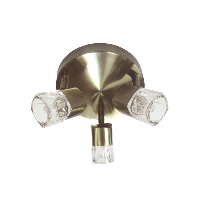 Σποτ της εταιρείας Aca Decor σε μίνιμαλ στυλ. Είναι κατασκευασμένο από μέταλλο σε μπρονζέ απόχρωση και διάφανο γυαλί. Διαθέτει περιστρεφόμενες κεφαλές, ώστε να ρυθμίσετε την κλίση του φωτισμού όπως ακριβώς επιθυμείτε. Τύπος ντουί: 3xG9 και θέσεις για 3 λαμπτήρες έως 40W έκαστος (δεν συμπεριλαμβάνονται).