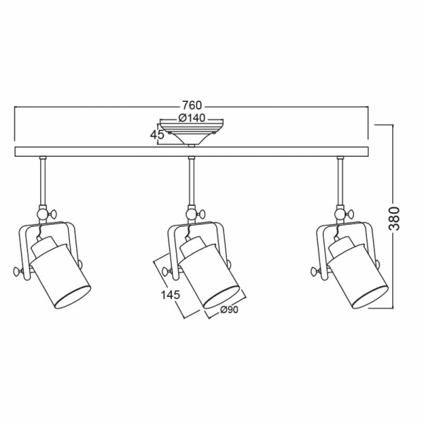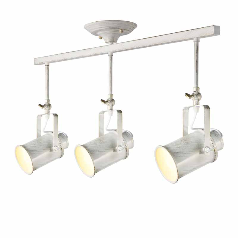 Σποτ της εταιρείας Aca Decor σε βιομηχανικό στυλ με περιστρεφόμενη κεφαλή. Είναι μεταλλικό σε λευκό χρώμα με χρυσές αντικέ λεπτομέρειες. Τύπος ντουί: 3xE27 και θέσεις για τρεις λαμπτήρες έως 60W έκαστος (δεν συμπεριλαμβάνονται).