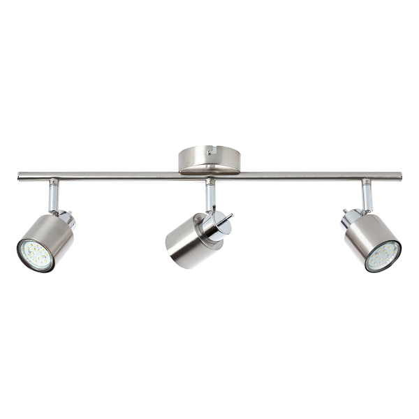 Σποτ της εταιρείας Aca Decor σε μίνιμαλ στυλ με περιστρεφόμενες κεφαλές και βραχίονες. Μπορεί να τοποθετηθεί σε τοίχο και οροφή. Είναι κατασκευασμένο από μέταλλο σε ασημί απόχρωση. Τύπος ντουί: 3xGU10 και θέσεις για 3 λαμπτήρες έως 50W (δεν συμπεριλαμβάνονται).