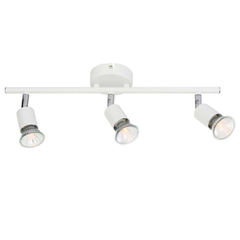 Σποτ με ράγα της εταιρείας Aca Decor σε μοντέρνο στυλ με περιστρεφόμενες κεφαλές και βραχίονες. Μπορεί να τοποθετηθεί σε τοίχο και οροφή. Μεταλλικά σποτ σε λευκό ματ χρώμα. Τύπος ντουί: 3xGU10 και θέσεις για τρεις λαμπτήρες έως 50W (δεν συμπεριλαμβάνονται).