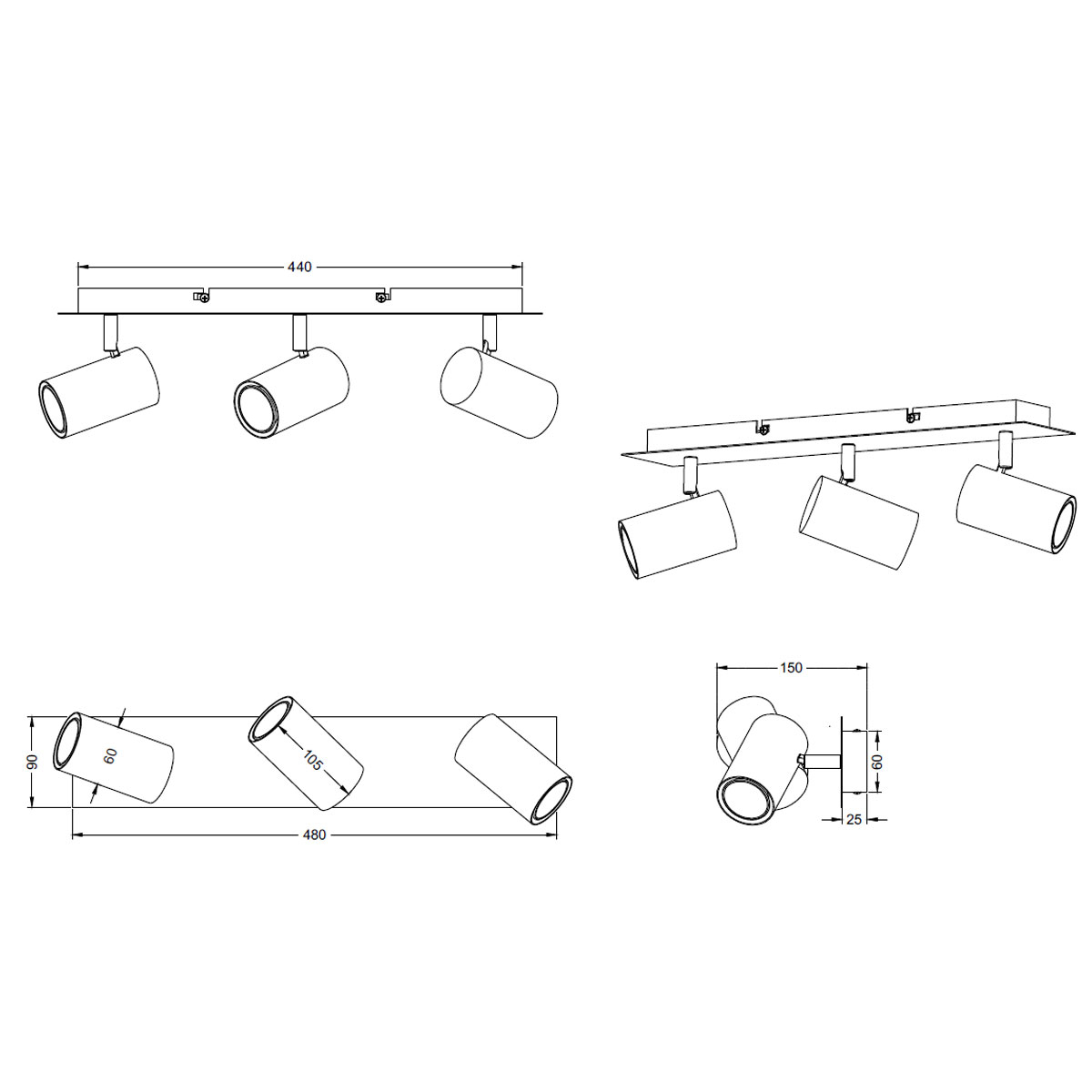 • Τεμάχια: 1 Σποτ Οροφής Με Ράγα Τρίφωτο 48εκ.Mx9εκ.Πx15εκ.Υ