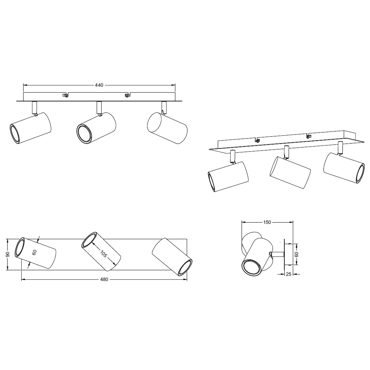 • Τεμάχια: 1 Σποτ Οροφής Με Ράγα Τρίφωτο 48εκ.Mx9εκ.Πx15εκ.Υ