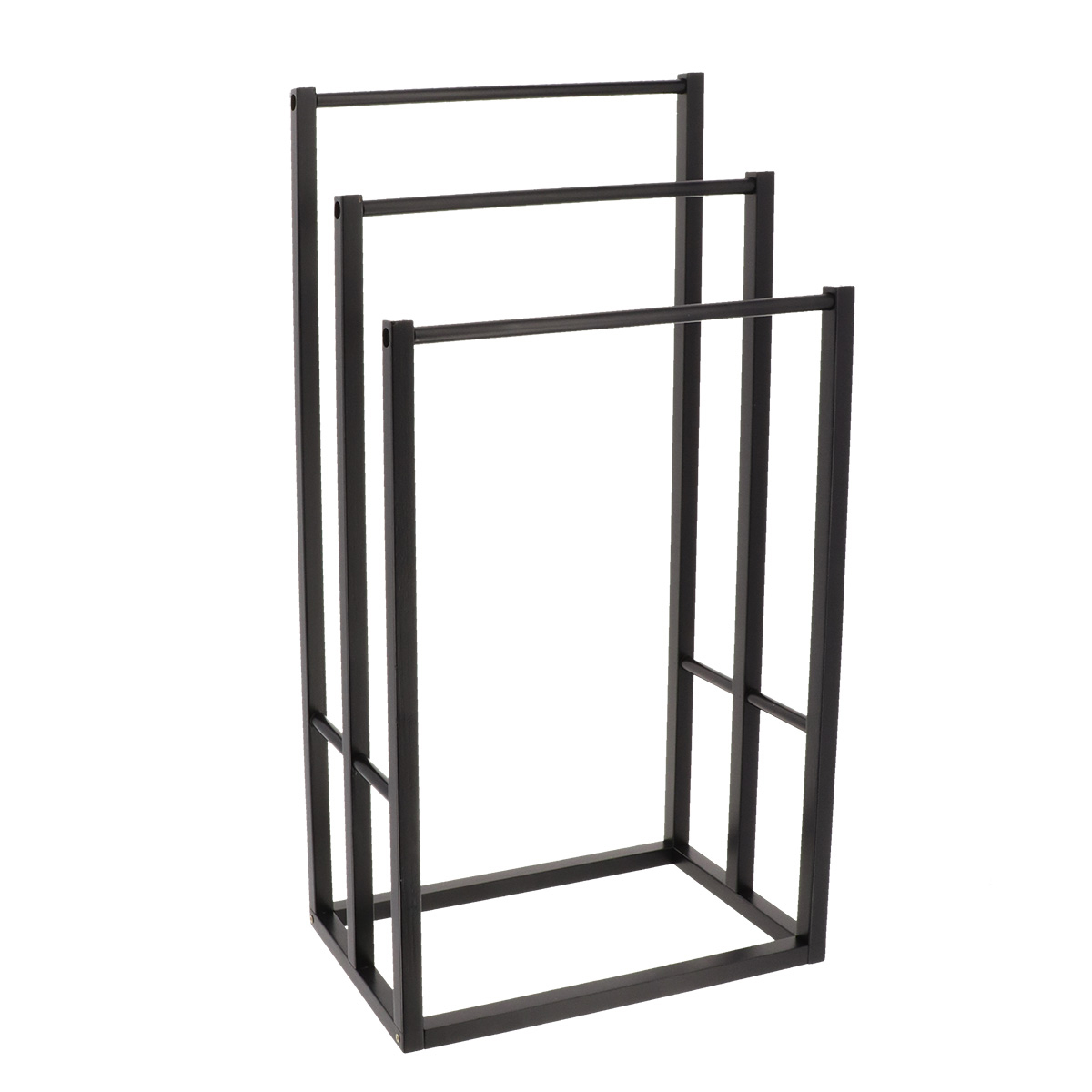 Σταντ για πετσέτες κατασκευασμένο από ξύλο bamboo σε μαύρο χρώμα. Πρόκειται για καλόγερο μπάνιου με 3 θέσεις για να κρεμάτε πετσέτες ή ότι άλλο θέλετε να στεγνώσει γρήγορα. Απαραίτητο αξεσουάρ που θα ταιριάξει σε κάθε μπάνιο. *Το προϊόν έρχεται αμοντάριστο και συναρμολογείται βάσει οδηγιών.*