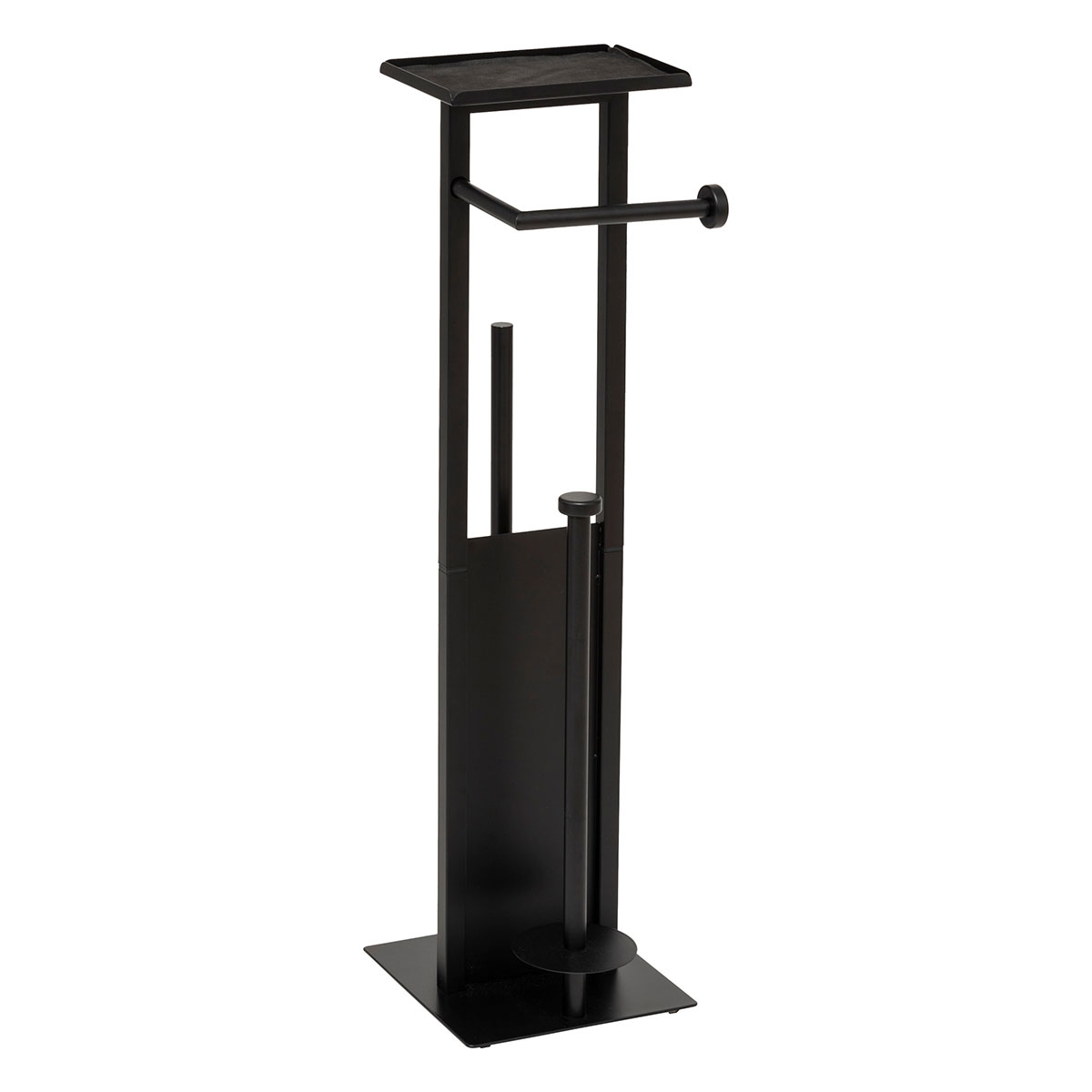 Σταντ για χαρτί υγείας και πιγκάλ με μίνιμαλ ύφος. Είναι κατασκευασμένο από μεταλλικό υλικό σε μαύρο χρώμα και διαθέτει: α) χαρτοθήκη για τοποθέτηση του χαρτιού υγείας, β) αποθηκευτικό χώρο για έως 4 επιπλέον χαρτιά υγείας γ) επιφάνεια για να ακουμπάτε το κινητό σας τηλέφωνο, δ) βουτσάκι τουαλέτας. Πολύ πρακτικό και έξυπνο αξεσουάρ που ταιριάζει σε όλα τα μπάνια. Ιδανικό για όσους δεν θέλουν να τρυπήσουν τον τοίχο ή τα πλακάκια του μπάνιου.