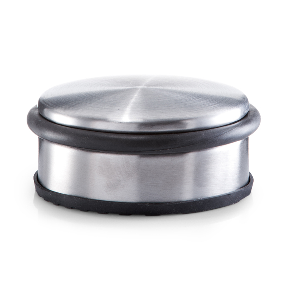 Στοπ πόρτας κατασκευασμένο από ανοξείδωτο ατσάλι σε ασημί χρώμα. Περιμετρικά έχει μαύρο λάστιχο για να μη γδάρει τις επιφάνειες. Είναι πολύ πρακτικό καθώς κρατάει ανοιχτή την πόρτα και δεν χτυπάει από τον αέρα. Παράλληλα χαρίζει ένα μοντέρνο τόνο στην διακόσμηση του χώρου σας.