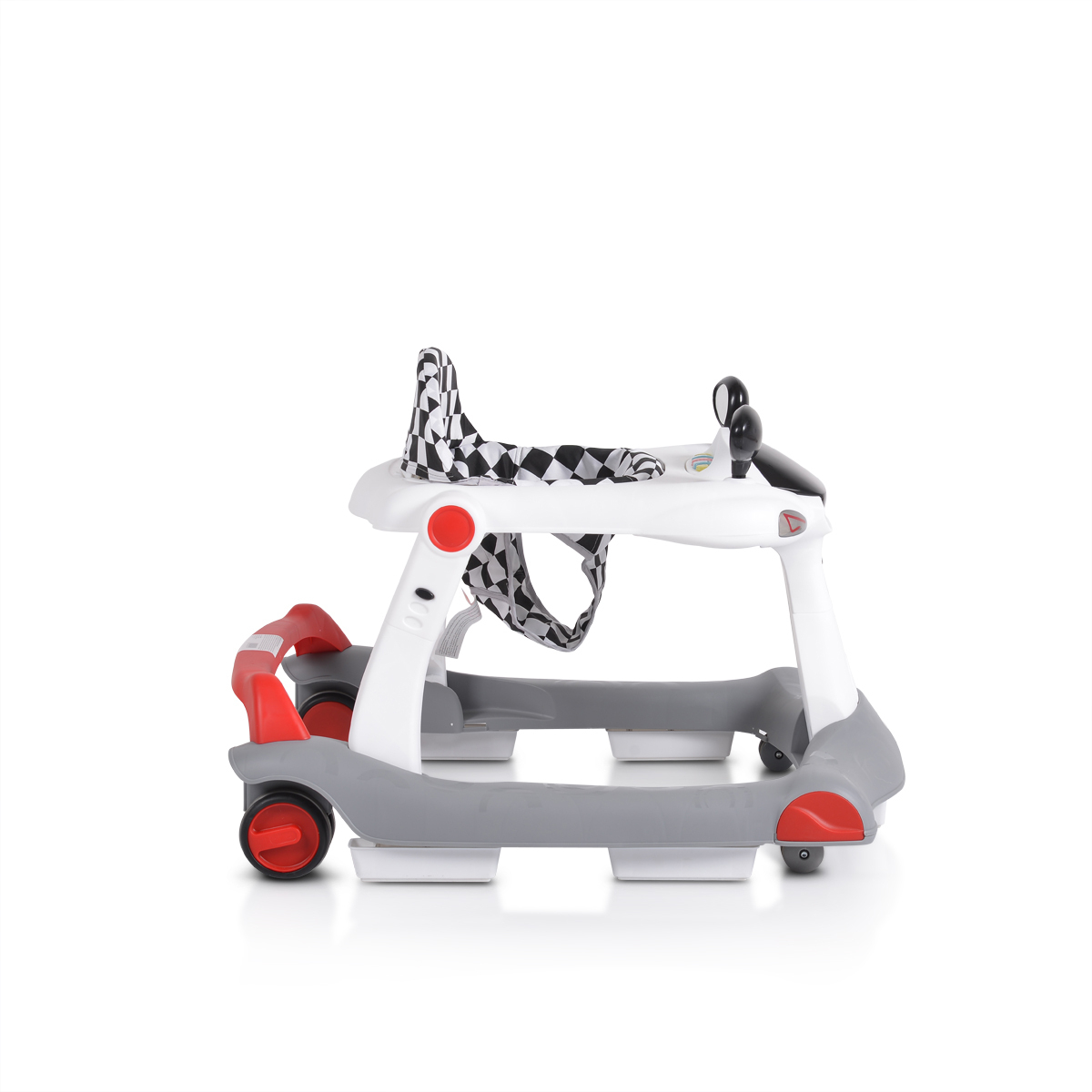 Στράτα σε γκρι-λευκό χρώμα από την εταιρεία Cangaroo. Eίναι ένα πολυλειτουργικό βοήθημα που χρησιμοποιείται σαν στράτα και σαν περπατούρα στα πρώτα βήματα του παιδιού σας. Διαθέτει ρυθμιζόμενο ύψος 3 θέσεων για να προσαρμόζεται στην ανάπτυξη του παιδιού, ενώ το αποσπώμενο μουσικό πάνελ με φωτεινά εφέ ενισχύει την αισθητηριακή του ανάπτυξη. Οι περιστρεφόμενοι τροχοί επιτρέπουν εύκολη κίνηση, ενώ το σύστημα ασφαλείας με αντιολισθητικά στοπ εξασφαλίζει προστασία κατά τη χρήση. Διπλώνει και αποθηκεύεται εύκολα. Είναι κατάλληλη για παιδιά ηλικίας από 6 μηνών και άνω και βάρος έως 12kg.