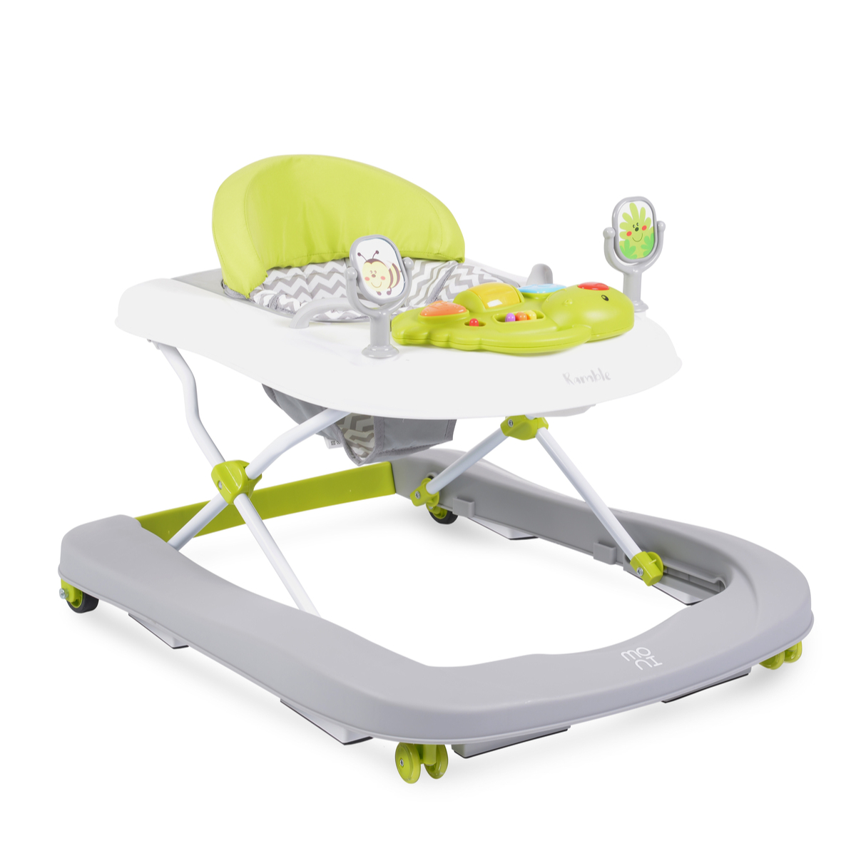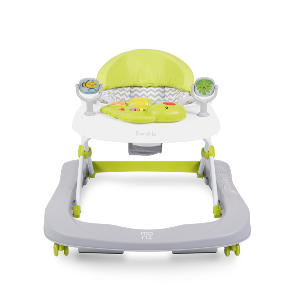 Στράτα σε γκρι-λαχανί χρώμα από την εταιρεία Moni. Κατασκευασμένη σύμφωνα με τις Ευρωπαϊκές προδιαγραφές EN 1273:2020. Eίναι ένα πολυλειτουργικό βοήθημα που χρησιμοποιείται σαν στράτα και σαν περπατούρα στα πρώτα βήματα του παιδιού σας. Το μαλακό καθισματάκι του έχει υπερυψωμένη πλάτη που στηρίζει το σώμα του παιδιού. Διαθέτει ρυθμιζόμενο ύψος 3 θέσεων για να προσαρμόζεται στην ανάπτυξη του παιδιού, ενώ τα παιχνίδια με την μουσική και τα φωτεινά εφέ ενισχύουν την αισθητηριακή του ανάπτυξη. Οι μπροστινοί τροχοί είναι περιστρεφόμενοι ενώ το σύστημα ασφαλείας με στοπ σιλικόνης εξασφαλίζει προστασία κατά τη χρήση. Διπλώνει και αποθηκεύεται εύκολα. Είναι κατάλληλη για παιδιά ηλικίας από 6 μηνών και άνω και βάρος έως 12kg.