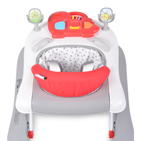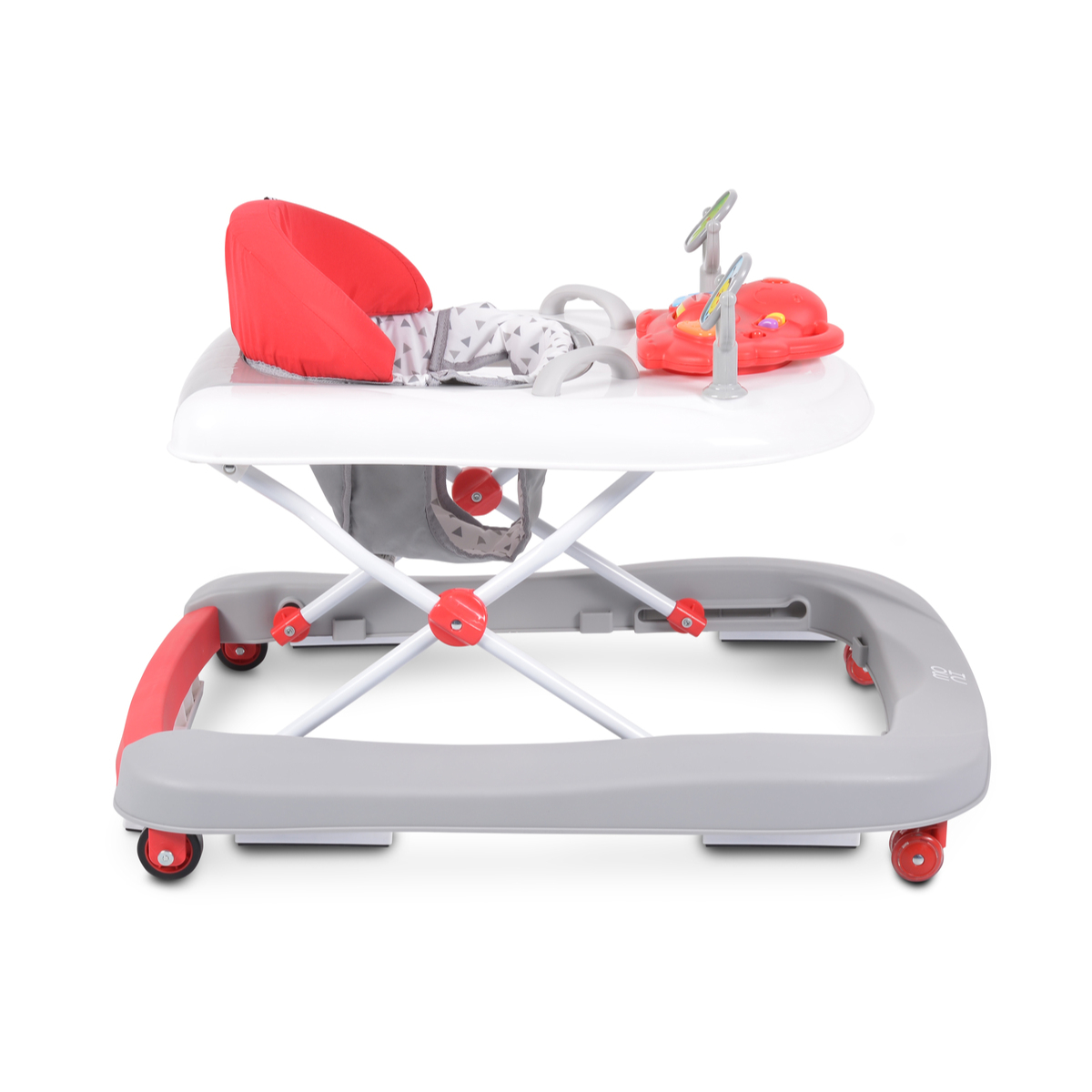 Στράτα σε γκρι-κόκκινο χρώμα από την εταιρεία Moni. Κατασκευασμένη σύμφωνα με τις Ευρωπαϊκές προδιαγραφές EN 1273:2020. Eίναι ένα πολυλειτουργικό βοήθημα που χρησιμοποιείται σαν στράτα και σαν περπατούρα στα πρώτα βήματα του παιδιού σας. Το μαλακό καθισματάκι του έχει υπερυψωμένη πλάτη που στηρίζει το σώμα του παιδιού. Διαθέτει ρυθμιζόμενο ύψος 3 θέσεων για να προσαρμόζεται στην ανάπτυξη του παιδιού, ενώ τα παιχνίδια με την μουσική και τα φωτεινά εφέ ενισχύουν την αισθητηριακή του ανάπτυξη. Οι μπροστινοί τροχοί είναι περιστρεφόμενοι ενώ το σύστημα ασφαλείας με στοπ σιλικόνης εξασφαλίζει προστασία κατά τη χρήση. Διπλώνει και αποθηκεύεται εύκολα. Είναι κατάλληλη για παιδιά ηλικίας από 6 μηνών και άνω και βάρος έως 12kg.