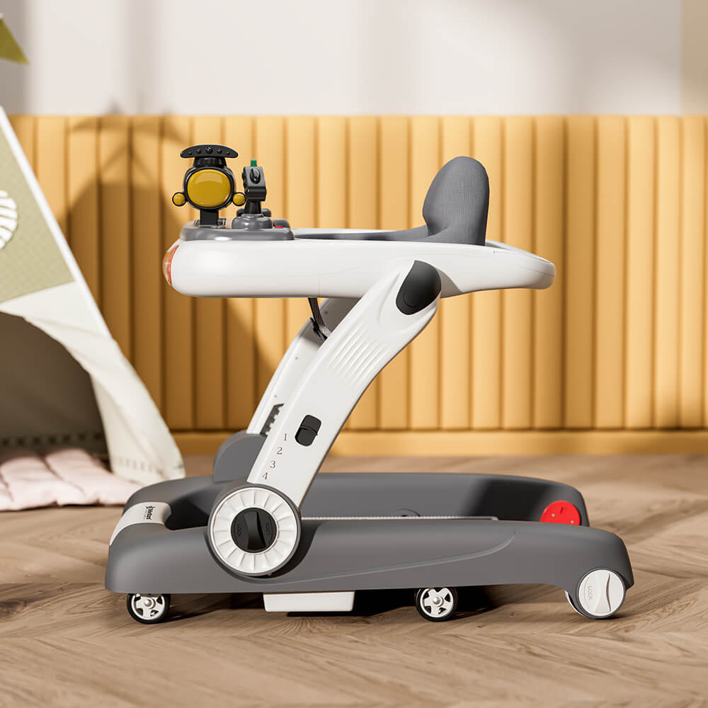 Πολυλειτουργική στράτα από την εταιρεία Bebe Stars σε γκρι-λευκό χρώμα. Μπορεί να χρησιμοποιηθεί σαν στράτα, περπατούρα ή jumper, ανάλογα την ηλικία και το αναπτυξιακό στάδιο του παιδιού σας. Βοηθάει το παιδί να καλλιεργήσει την αίσθηση της κατεύθυνσης, να ανεξαρτητοποιηθεί, να εξασκηθεί στο περπάτημα, να γυμνάζει και να δυναμώνει τους μύες των ποδιών και να νιώθει ασφάλεια καθώς εξερευνεί. Διαθέτει ανατομικό κάθισμα με επένδυση που καθαρίζεται εύκολα και ρυθμιζόμενο ύψος 4 θέσεων. Διαθέτει αποσπώμενο ηλεκτρονικό παιχνίδι-τρενάκι με ήχους και LED φωτάκια. Μετατρέπεται σε baby jumper εύκολα μέσω του ειδικού μοχλού ενώ έχει ειδικό χαλάκι για να πατάει το παιδί όταν η στράτα είναι ακινητοποιημένη. Εξοπλισμένο με 6 αντιολισθητικούς τροχούς σιλικόνης, με τους πίσω τροχούς να έχουν ρύθμιση ταχύτητας. Το stopper αποτρέπει τυχόν πτώσεις από σκάλες προσφέροντας μέγιστη ασφάλεια. Η λαβή έχει αντιολισθητική επένδυση προσφέροντας σταθερό κράτημα όταν χρησιμοποιείται σαν περπατούρα. Λειτουργεί με 7 μπαταρίες ΑΑ (δεν περιλαμβάνονται). Κατασκευασμένη σύμφωνα με τα Ευρωπαϊκά Πρότυπα EN1273:2020 & EN71, CE. Κατάλληλο για μωρά 7 έως 18 μηνών ή 12kg.