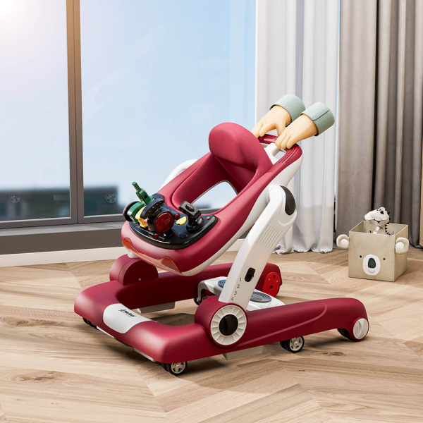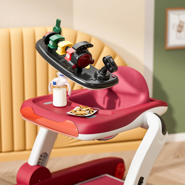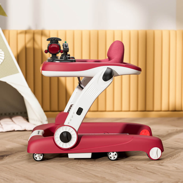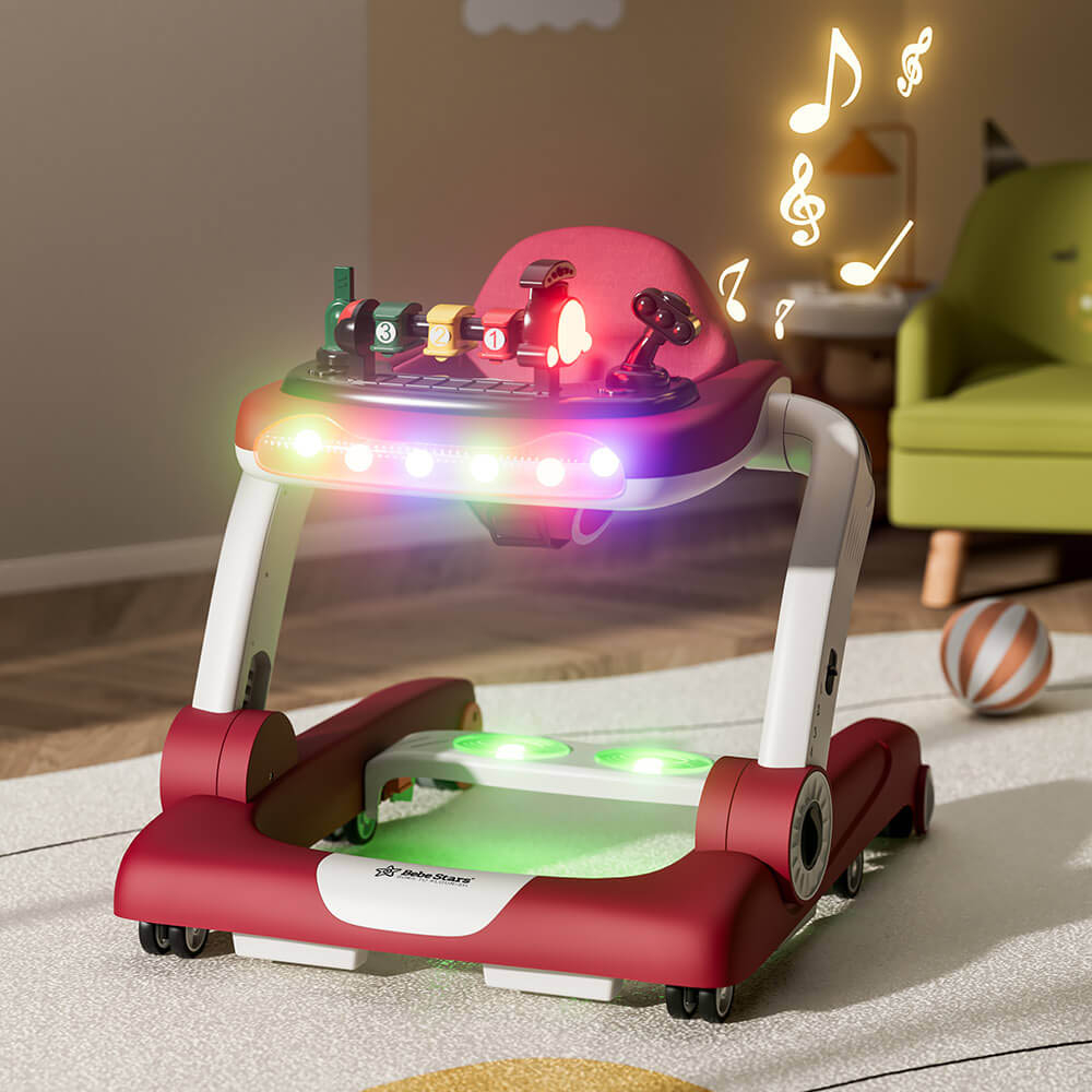 Πολυλειτουργική στράτα από την εταιρεία Bebe Stars σε κόκκινο-λευκό χρώμα. Μπορεί να χρησιμοποιηθεί σαν στράτα, περπατούρα ή jumper, ανάλογα την ηλικία και το αναπτυξιακό στάδιο του παιδιού σας. Βοηθάει το παιδί να καλλιεργήσει την αίσθηση της κατεύθυνσης, να ανεξαρτητοποιηθεί, να εξασκηθεί στο περπάτημα, να γυμνάζει και να δυναμώνει τους μύες των ποδιών και να νιώθει ασφάλεια καθώς εξερευνεί. Διαθέτει ανατομικό κάθισμα με επένδυση που καθαρίζεται εύκολα και ρυθμιζόμενο ύψος 4 θέσεων. Διαθέτει αποσπώμενο ηλεκτρονικό παιχνίδι-τρενάκι με ήχους και LED φωτάκια. Μετατρέπεται σε baby jumper εύκολα μέσω του ειδικού μοχλού ενώ έχει ειδικό χαλάκι για να πατάει το παιδί όταν η στράτα είναι ακινητοποιημένη. Εξοπλισμένο με 6 αντιολισθητικούς τροχούς σιλικόνης, με τους πίσω τροχούς να έχουν ρύθμιση ταχύτητας. Το stopper αποτρέπει τυχόν πτώσεις από σκάλες προσφέροντας μέγιστη ασφάλεια. Η λαβή έχει αντιολισθητική επένδυση προσφέροντας σταθερό κράτημα όταν χρησιμοποιείται σαν περπατούρα. Λειτουργεί με 7 μπαταρίες ΑΑ (δεν περιλαμβάνονται). Κατασκευασμένη σύμφωνα με τα Ευρωπαϊκά Πρότυπα EN1273:2020 & EN71, CE. Κατάλληλο για μωρά 7 έως 18 μηνών ή 12kg.