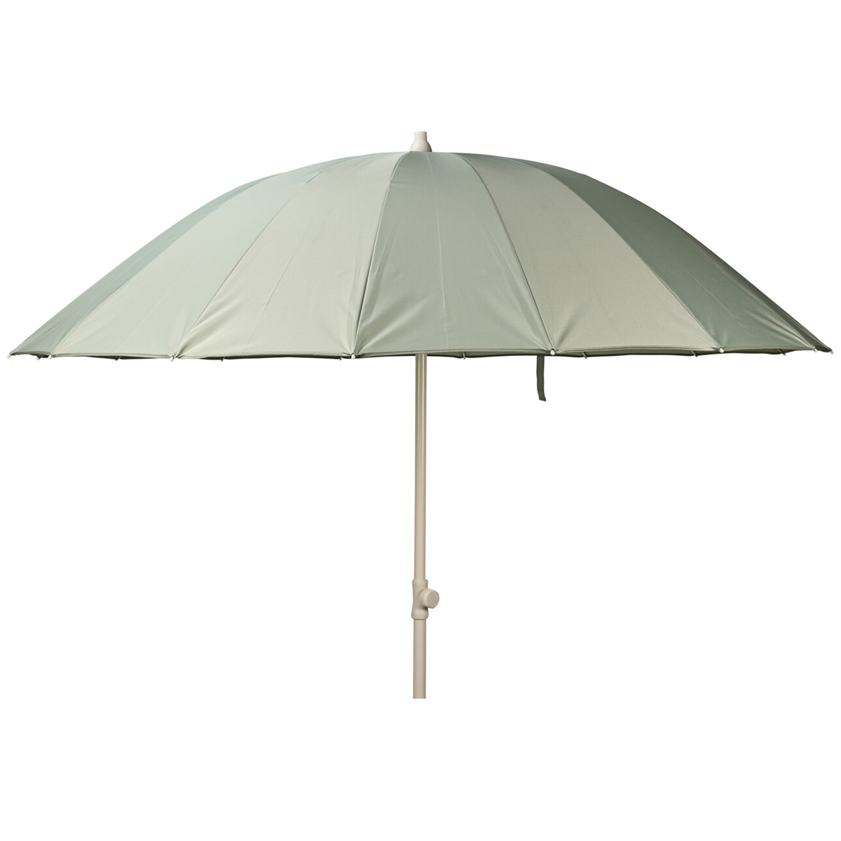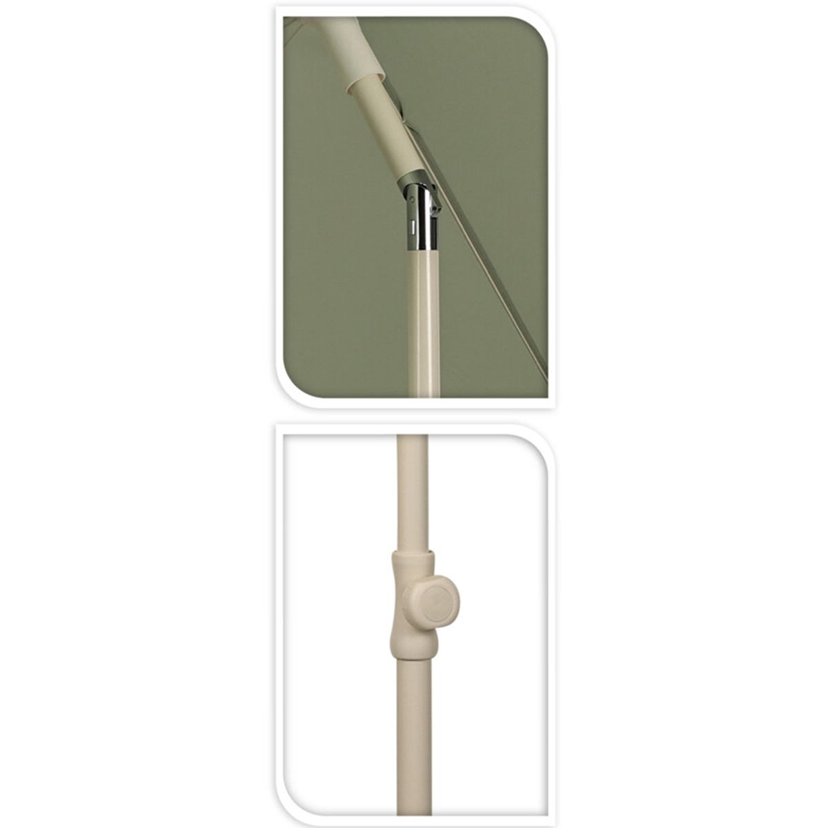 Στρογγυλή ομπρέλα κήπου με διάμετρο 2.2 μέτρα σε χακί απόχρωση. Είναι κατασκευασμένη από αδιαβροχοποιημένο ύφασμα από 100% polyester και έχει προστασία υπεριωδών ακτίνων 50+. Διαθέτει σκελετό αλουμινίου και 16 ακτίνες που διασφαλίζει σταθερή κατασκευή. Το ύψος της μπορεί να προσαρμοστεί ενώ έχει ανάκληση για να προσφέρει σκιά από διαφορετικές γωνίες. Μπορεί να χρησιμοποιηθεί στον κήπο, στο μπαλκόνι ή στην παραλία. Επίσης μπορείτε να την πάρετε μαζί σας στο κάμπινγκ ή στο ψάρεμα. Δεν περιλαμβάνεται βάση. Δεν περιλαμβάνεται βάση.