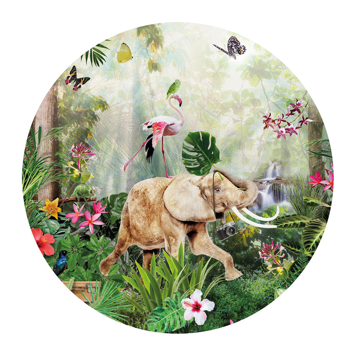 Ενιαία στρογγυλή ταπετσαρία τοίχου από την συλλογή Sofie & Junar της εταιρείας Behang Expresse με διάμετρο 100εκ. Έχει σχέδιο με θέμα τη ζούγκλα σε πράσινες και πολύχρωμες. Πρόκειται για χάρτινη στρογγυλή φωτοταπετσαρία υψηλής ποιότητας και ιταλικής κατασκευής με Vlies - Non Woven υπόστρωμα. Η επιφάνειά της είναι λεία κατασκευασμένη από πολυτελές χαρτί ψηφιακής εκτύπωσης. Ιδανική για να τοποθετηθεί και στο βρεφικό ή παιδικό δωμάτιο δίνοντας μία παραμυθένια αίσθηση στο χώρο.