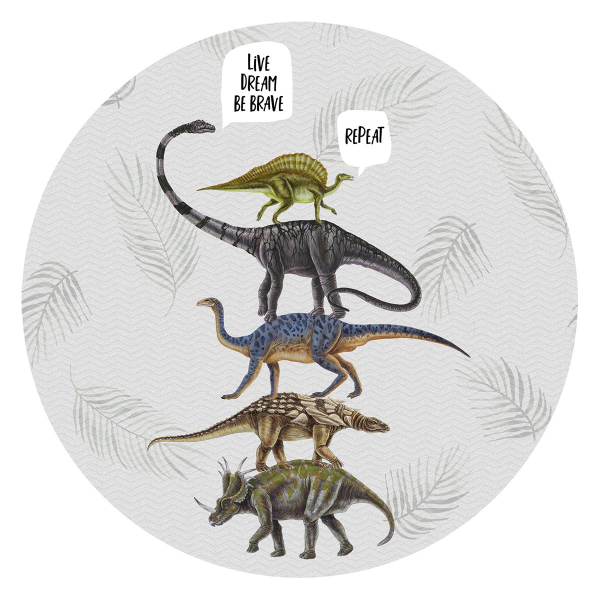 Ενιαία στρογγυλή ταπετσαρία τοίχου από την συλλογή Sofie & Junar της εταιρείας Behang Expresse με διάμετρο 75εκ. Έχει σχέδιο με δεινόσαυρους σε γκρι φόντο. Πρόκειται για χάρτινη στρογγυλή φωτοταπετσαρία υψηλής ποιότητας και ιταλικής κατασκευής με Vlies - Non Woven υπόστρωμα. Η επιφάνειά της είναι λεία κατασκευασμένη από πολυτελές χαρτί ψηφιακής εκτύπωσης. Ιδανική για να τοποθετηθεί και στο βρεφικό ή παιδικό δωμάτιο δίνοντας μία παραμυθένια αίσθηση στο χώρο.