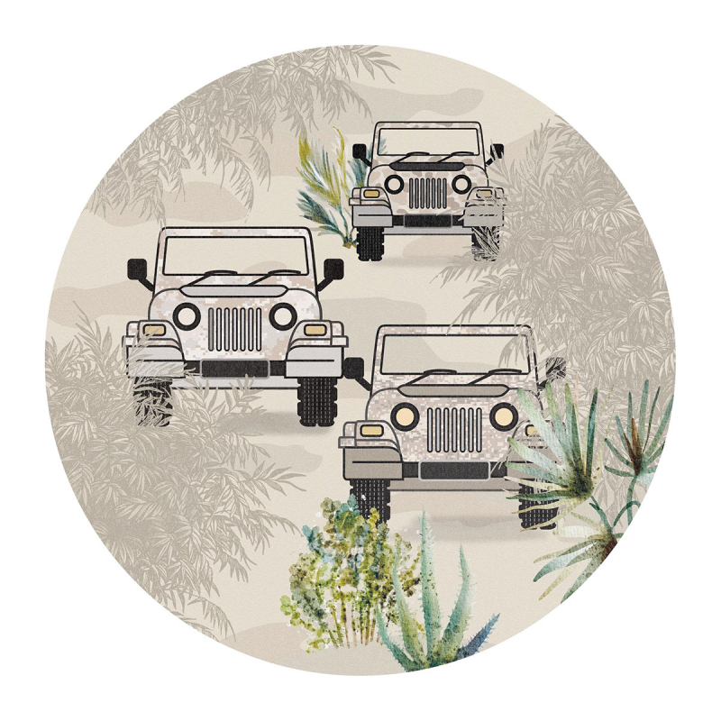 Ενιαία στρογγυλή ταπετσαρία τοίχου από την συλλογή Sofie & Junar της εταιρείας Behang Expresse με διάμετρο 75εκ. Έχει σχέδιο με αυτοκίνητα σε μπεζ αποχρώσεις. Πρόκειται για χάρτινη στρογγυλή φωτοταπετσαρία υψηλής ποιότητας και ιταλικής κατασκευής με Vlies - Non Woven υπόστρωμα. Η επιφάνειά της είναι λεία κατασκευασμένη από πολυτελές χαρτί ψηφιακής εκτύπωσης. Ιδανική για να τοποθετηθεί και στο βρεφικό ή παιδικό δωμάτιο δίνοντας μία παραμυθένια αίσθηση στο χώρο.