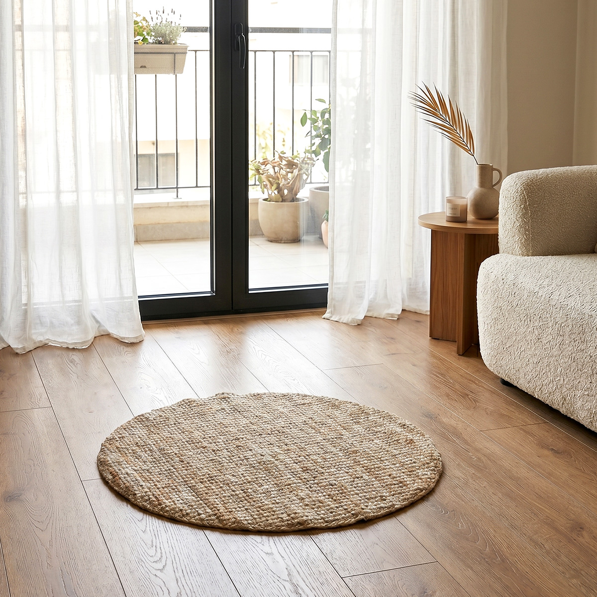Στρογγυλό πατάκι με διάμετρο 60εκ. από την σειρά Sombrero της εταιρείας Ravelia. Έχει μοντέρνο ύφος. Είναι κατασκευασμένο από 100% φυσική γιούτα σε μπεζ χρώμα. Το βάρος του είναι 3300gsm. Έχει αντιολισθητικό υπόστρωμα κατασκευασμένο από latex. Η ψάθινη υφή και η σύνθεσή του το καθιστούν ιδανικό για χρήση όλο τον χρόνο. Ιδανικό για να ταιριάξει σε οποιονδήποτε χώρο του σπιτιού σας. Συνδυάστε το με τα χαλιά της ίδιας σειράς στις υπόλοιπες διαστάσεις για ένα αρμονικό και ολοκληρωμένο αποτέλεσμα.