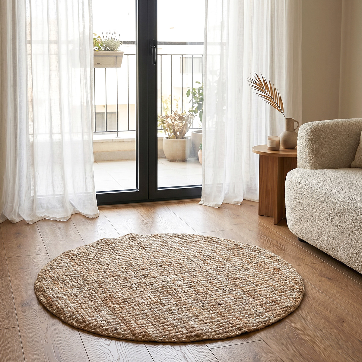 Στρογγυλό καλοκαιρινό μηχανοποίητο χαλί με διάμετρο 100εκ. από την σειρά Sombrero της εταιρείας Ravelia. Έχει μοντέρνο ύφος. Είναι κατασκευασμένο από 100% φυσική γιούτα σε μπεζ χρώμα. Το βάρος του είναι 3300gsm. Έχει αντιολισθητικό υπόστρωμα κατασκευασμένο από latex. Η ψάθινη υφή και η σύνθεσή του το καθιστούν ιδανικό για χρήση όλο τον χρόνο. Μια κομψή και πρακτική επιλογή για όλους τους χώρους του σπιτιού, που προσθέτει φυσικό στυλ και διαχρονική αισθητική. Συνδυάστε το με τα χαλιά της ίδιας σειράς στις υπόλοιπες διαστάσεις για ένα αρμονικό και ολοκληρωμένο αποτέλεσμα.