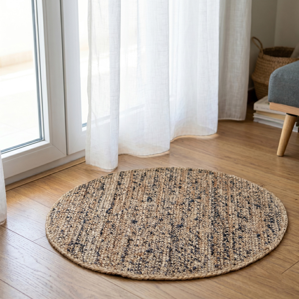 Στρογγυλό καλοκαιρινό μηχανοποίητο χαλί με διάμετρο 120εκ. από την σειρά Ronda της εταιρείας Ravelia. Έχει μοντέρνο ύφος. Είναι κατασκευασμένο από 100% φυσική γιούτα σε μπεζ-γκρι χρώμα. Το βάρος του είναι 3300gsm. Έχει αντιολισθητικό υπόστρωμα κατασκευασμένο από latex. Η ψάθινη υφή και η σύνθεσή του το καθιστούν ιδανικό για χρήση όλο τον χρόνο. Μια κομψή και πρακτική επιλογή για όλους τους χώρους του σπιτιού, που προσθέτει φυσικό στυλ και διαχρονική αισθητική. Συνδυάστε το με τα χαλιά της ίδιας σειράς στις υπόλοιπες διαστάσεις για ένα αρμονικό και ολοκληρωμένο αποτέλεσμα.