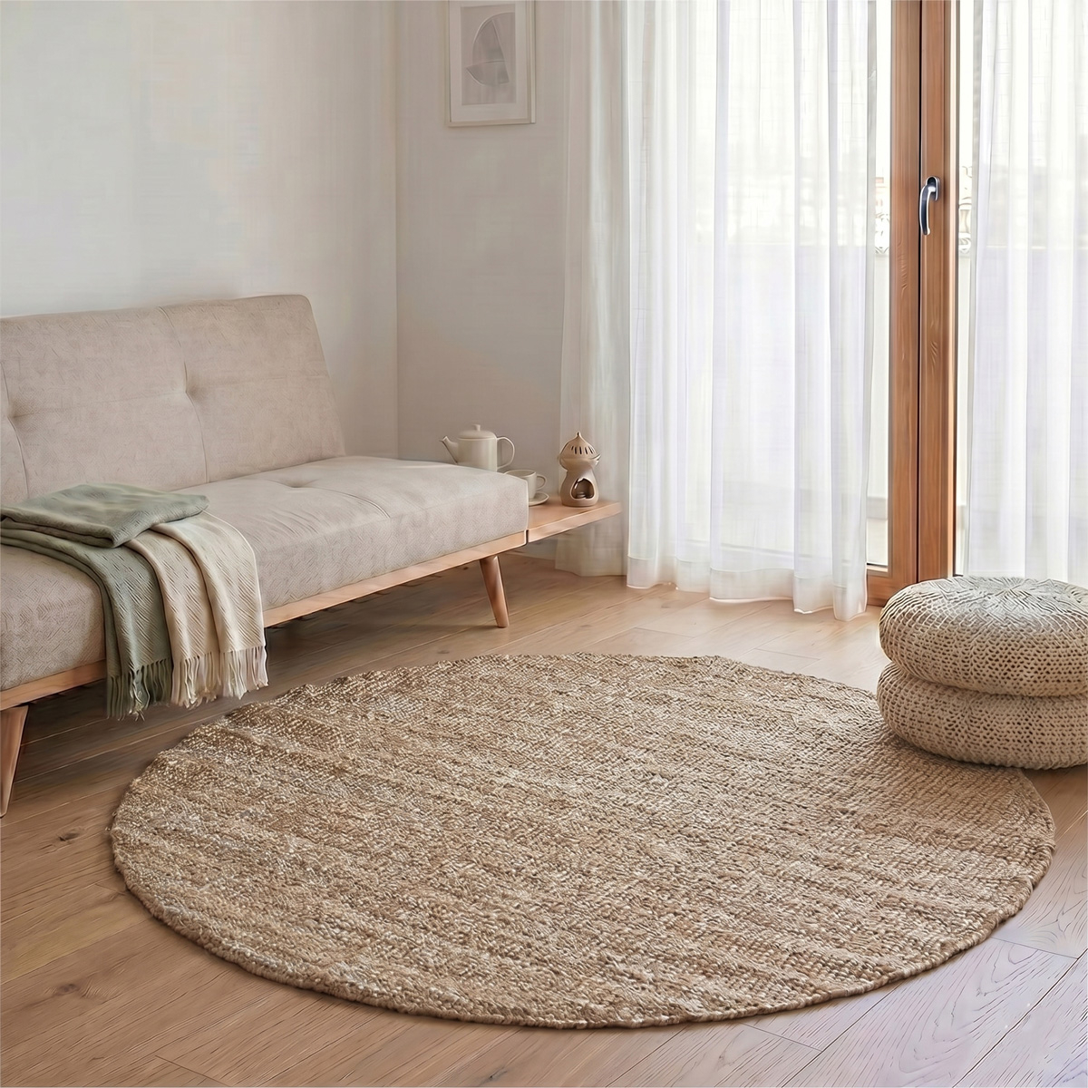 Στρογγυλό καλοκαιρινό μηχανοποίητο χαλί με διάμετρο 150εκ. από την σειρά Sombrero της εταιρείας Ravelia. Έχει μοντέρνο ύφος. Είναι κατασκευασμένο από 100% φυσική γιούτα σε μπεζ χρώμα. Το βάρος του είναι 3300gsm. Έχει αντιολισθητικό υπόστρωμα κατασκευασμένο από latex. Η ψάθινη υφή και η σύνθεσή του το καθιστούν ιδανικό για χρήση όλο τον χρόνο. Μια κομψή και πρακτική επιλογή για όλους τους χώρους του σπιτιού, που προσθέτει φυσικό στυλ και διαχρονική αισθητική. Συνδυάστε το με τα χαλιά της ίδιας σειράς στις υπόλοιπες διαστάσεις για ένα αρμονικό και ολοκληρωμένο αποτέλεσμα.