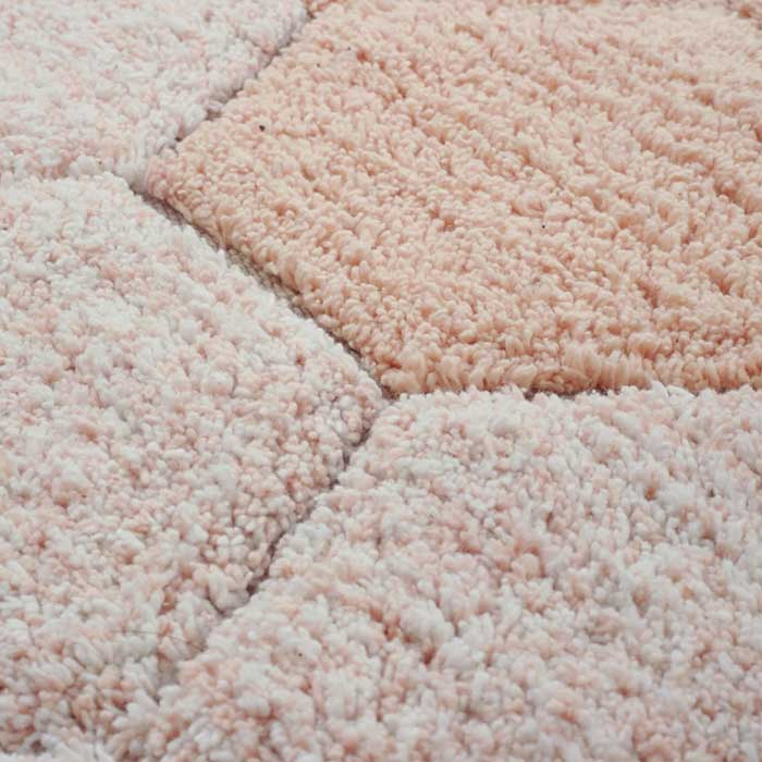 Χειροποίητο χαλί 4 εποχών με διάμετρο 140εκ. από την εταιρεία Lorena Canals σε ροζ χρώμα με μοτίβο κυψέλης. Το πέλος του είναι κατασκευασμένο από 97% φυσικό βαμβάκι και 3% άλλες ίνες. Είναι βαμμένο με μη τοξικές βαφές. Αυτό το καθιστά οικολογικό και βιώσιμο. Είναι ελαφρύ και απαλό καθιστώντας το ιδανικό για την τοποθέτηση στο βρεφικό-παιδικό δωμάτιο. Είναι φυσιολογικό το χαλί να απελευθερώνει χνούδι λόγω του χειροποίητου τρόπου κατασκευής. Κάθε κομμάτι είναι μοναδικό, επομένως μπορεί να υπάρχουν μικρές παραλλαγές στο χρώμα. Αυτό το προϊόν συμμορφώνεται με όλους τους κανονισμούς ποιότητας και ασφάλειας για παιδιά και είναι πιστοποιημένο με ISO 9001, ISO 14001, ISO 45001.
